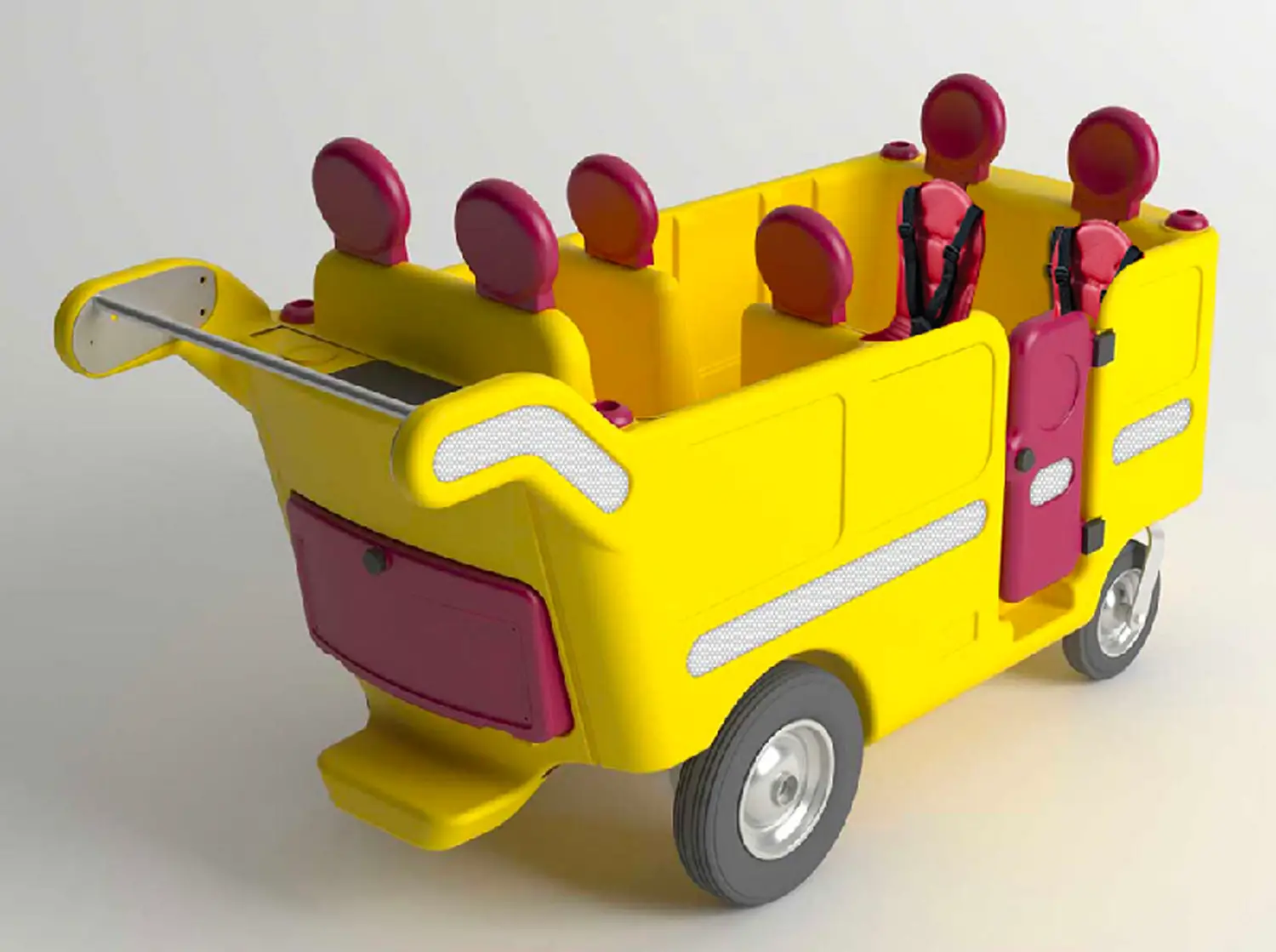 Grazie alla struttura robusta, trazione elettrica e possibilità di personalizzazione, è ideale per asili, scuole e passeggiate di gruppo, garantendo un trasporto efficiente e protetto per tutti i bambini.