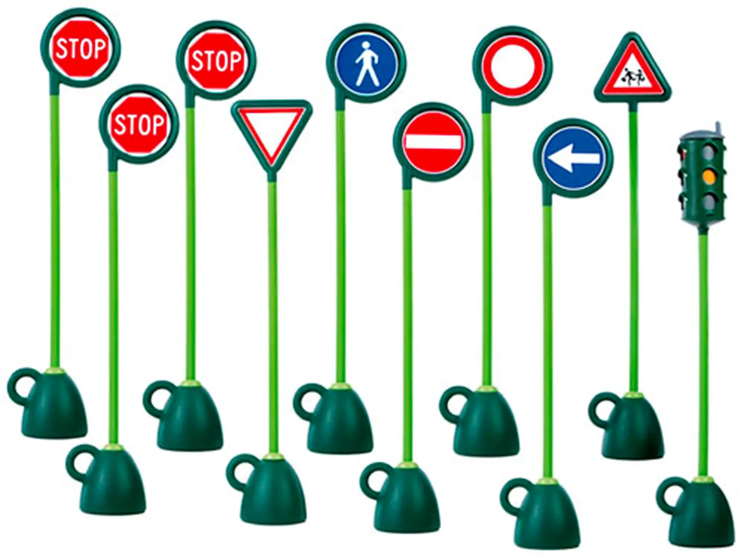 - ✅ Il set include 9 segnali stradali e un semaforo funzionante, altezza segnale 150 cm.