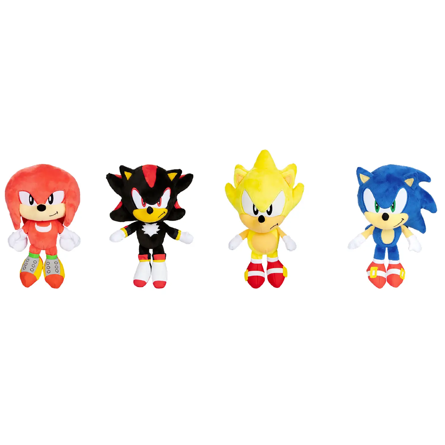 Morbidi e irresistibili per i fan di Sonic Porta a casa i tuoi personaggi preferiti di Sonic the Hedgehog con questa collezione di peluche da circa 23 cm**, perfetti per abbracci e collezionisti!