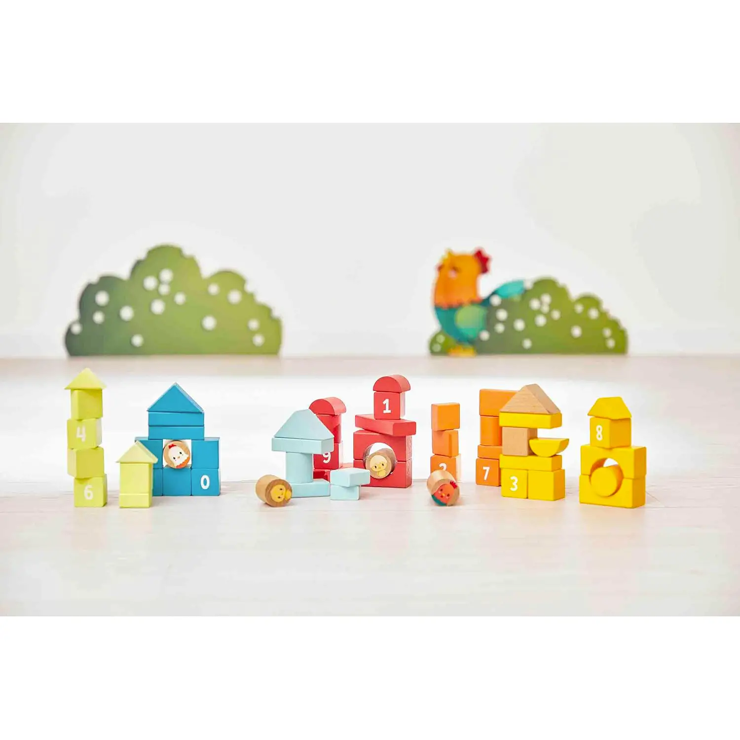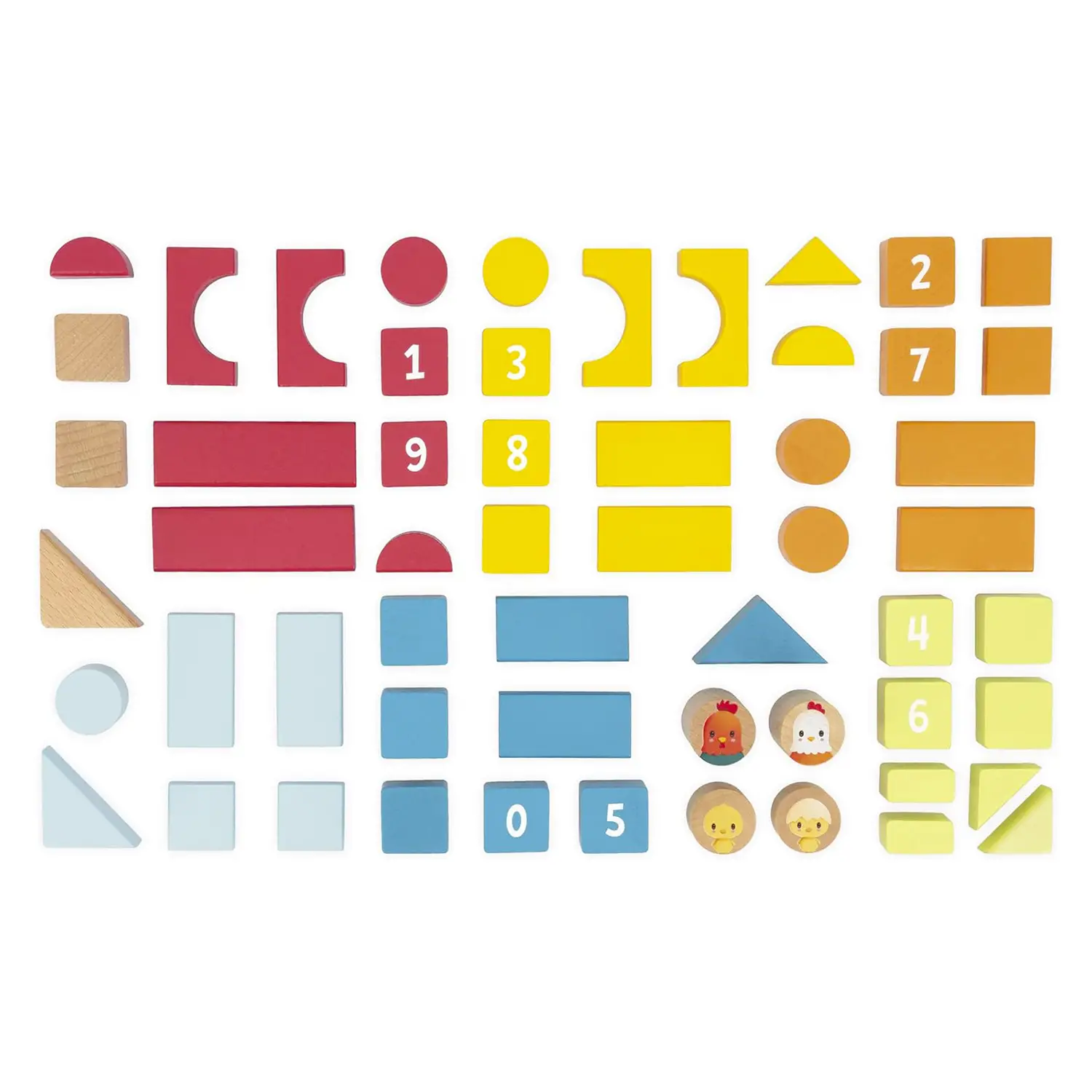Apprendimento di Numeri e Forme Include cubi numerati da 0 a 9 e diverse forme geometriche. Favorisce il riconoscimento di numeri, colori e forme, accompagnando i primi apprendimenti in modo naturale e divertente.