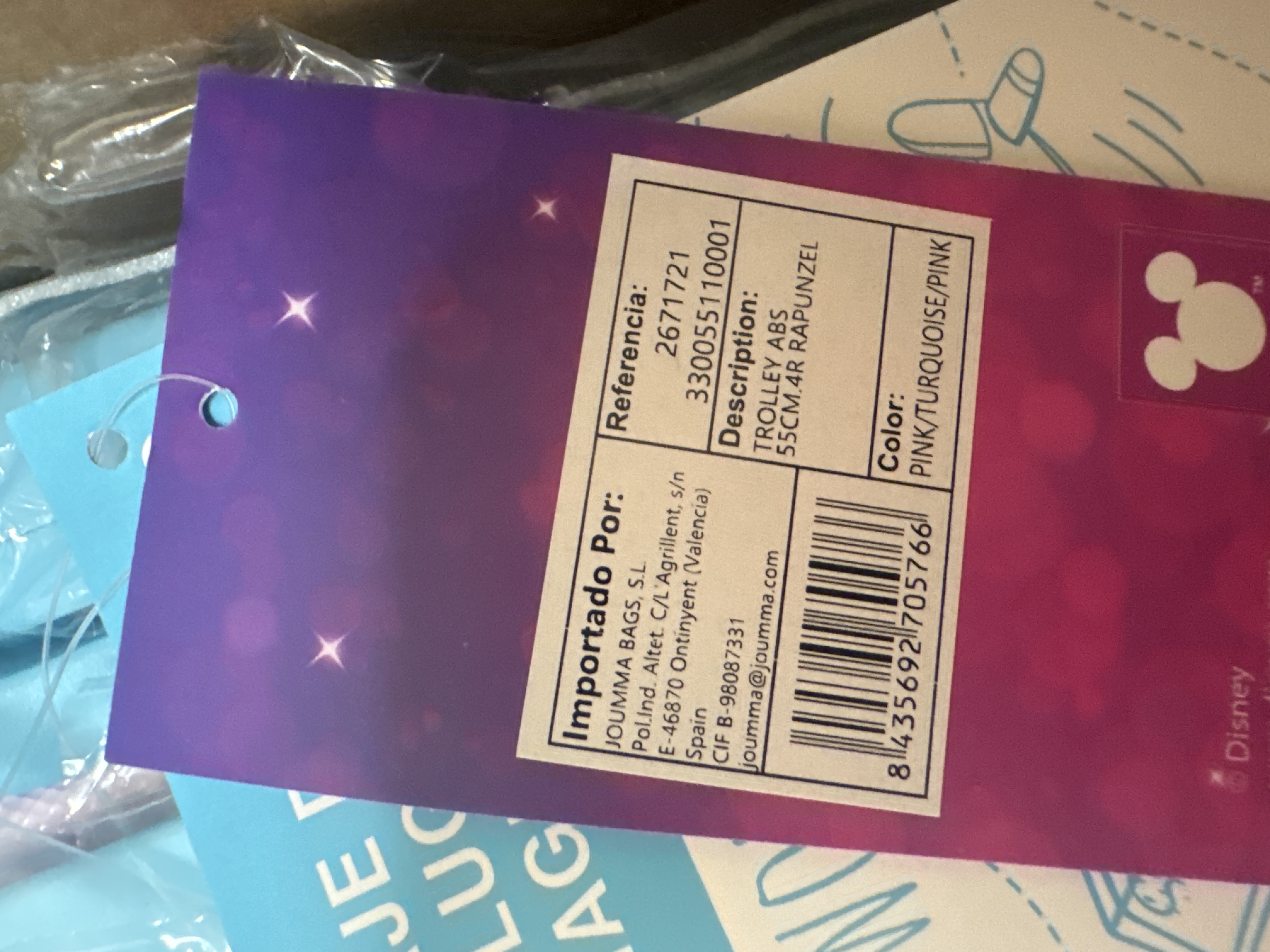 Prodotto da Joumma Bags, il trolley Rapunzel unisce funzionalità e stile, ideale per fan della principessa Disney.