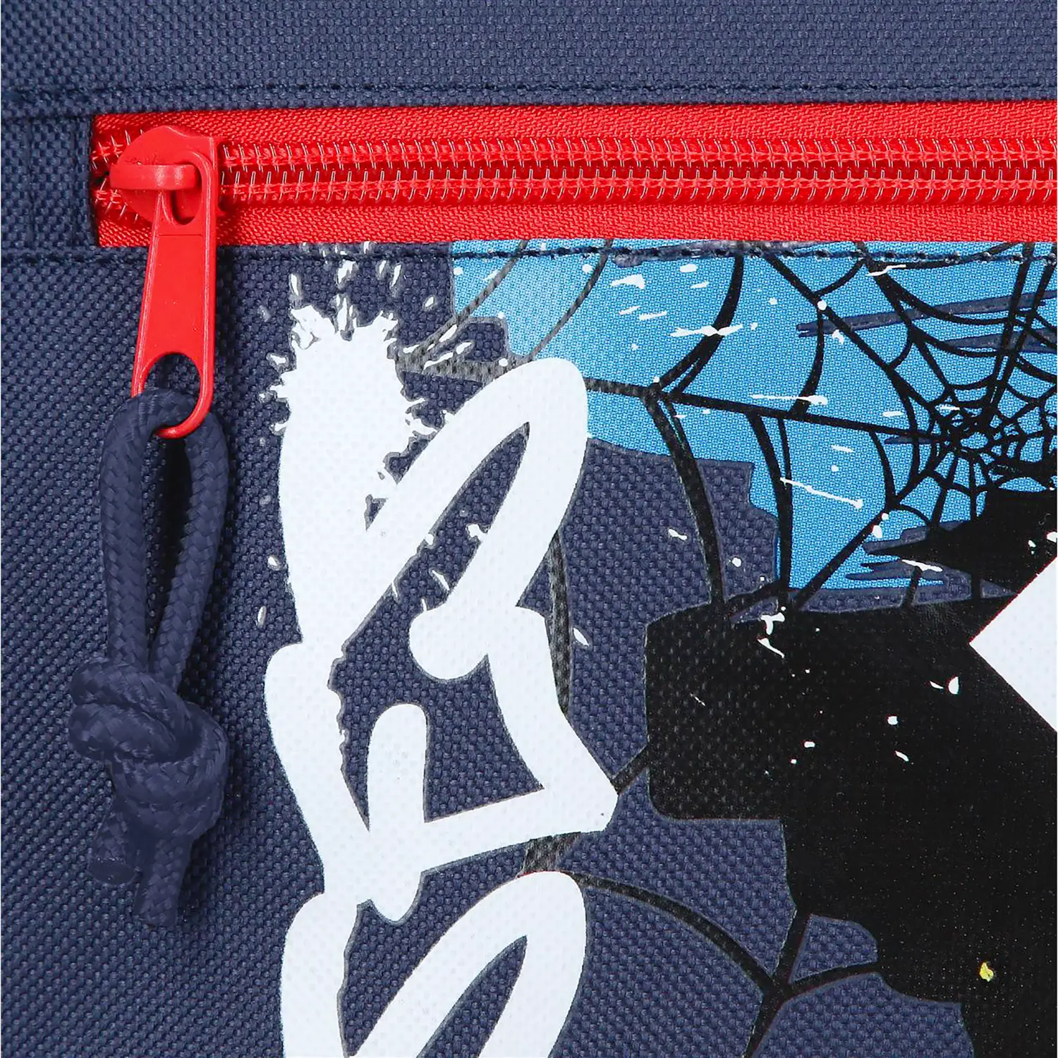 Grafica Graffiti Spiderman d’impatto Stampa frontale con volto Spiderman, scritta graffiti e ragnatele decorative. Un accessorio scuola dal forte impatto visivo, perfetto anche come idea regalo per bambini appassionati di supereroi Marvel.