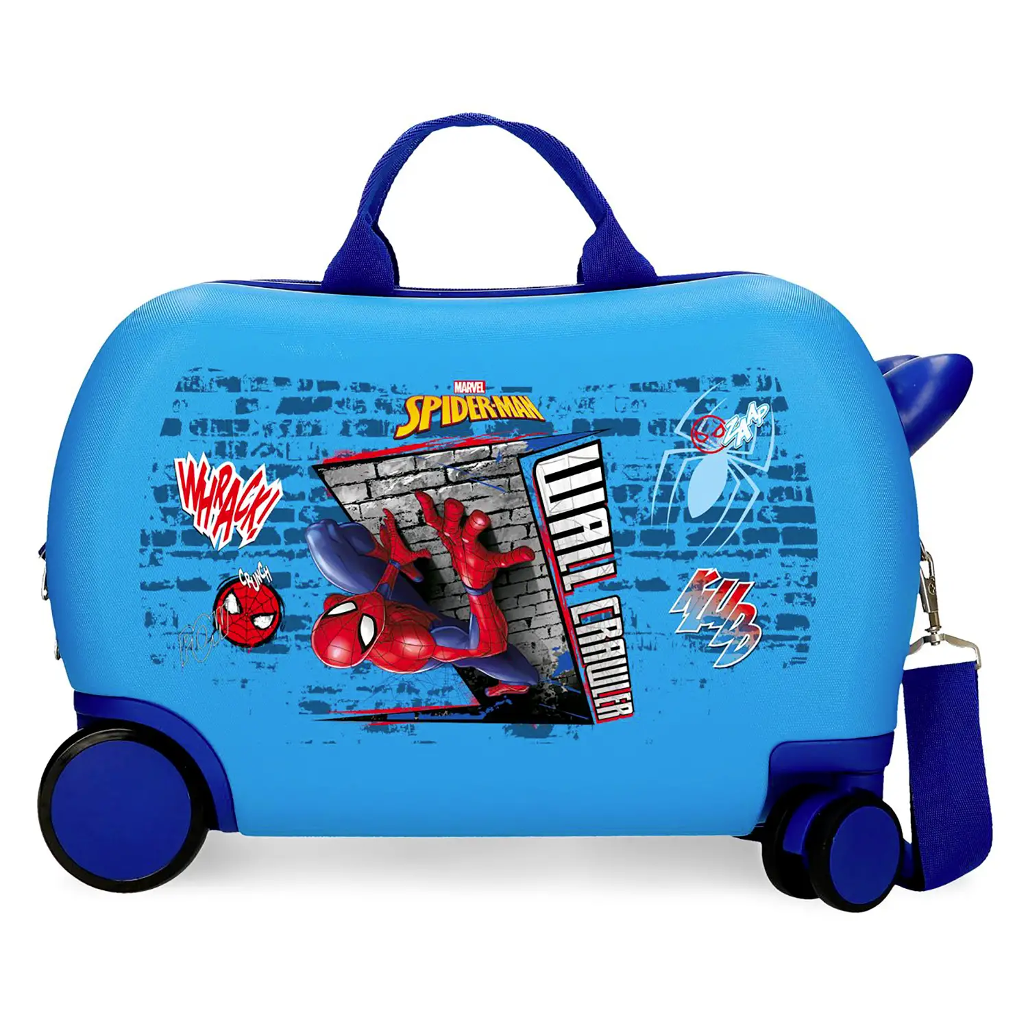 Spiderman Wall Crawler Trolley Da Viaggio Cavalcabile Abs 45 cm 4 Ruote Azzurro