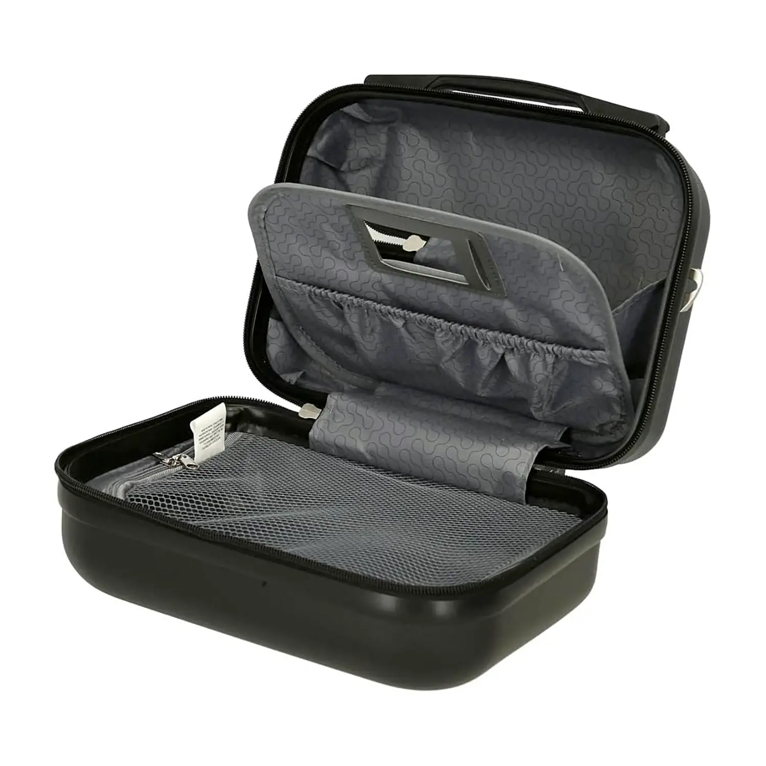 Interni organizzati e pratici Dotato di due scomparti ben definiti, uno specchio integrato e una pratica tasca, il beauty case assicura una gestione ordinata degli accessori, facilitando la routine di bellezza anche fuori casa.