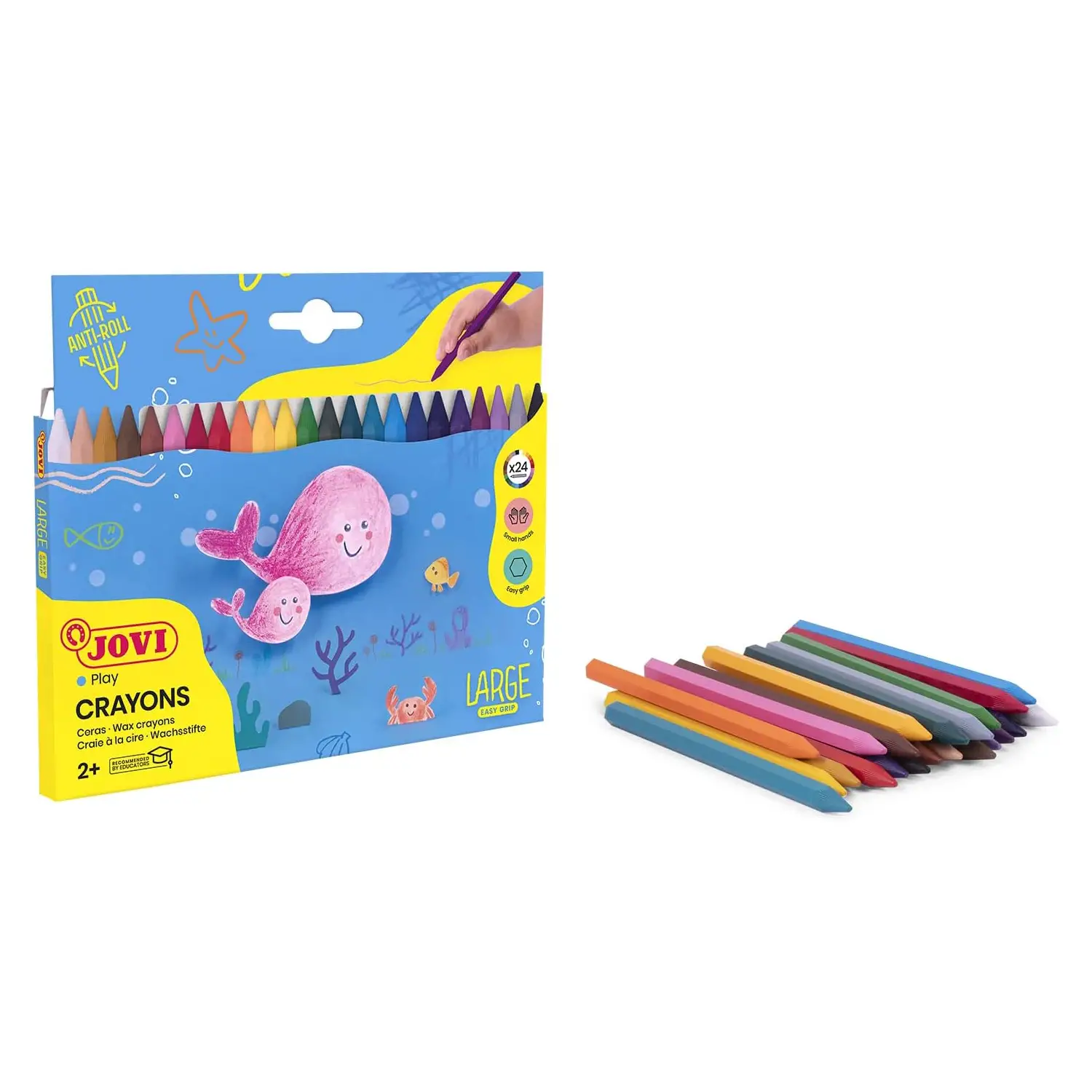 I Pastelli Plasticolor Esagonali JOVI da 24 colori sono pastelli in cera di alta qualità, ideali per attività artistiche, scolastiche e creative. Offrono colori vivaci, intensi e altamente coprenti, con una stesura fluida e uniforme, senza grumi.