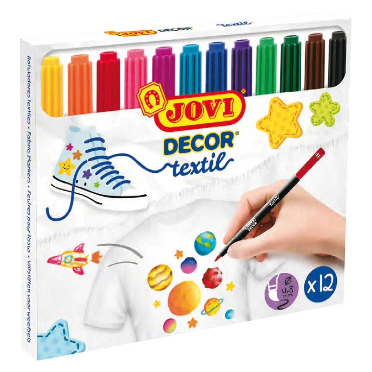 - ✅ Pennarelli Jovi Decor Textil ideali per decorare tessuti chiari con colori vivaci e duraturi.