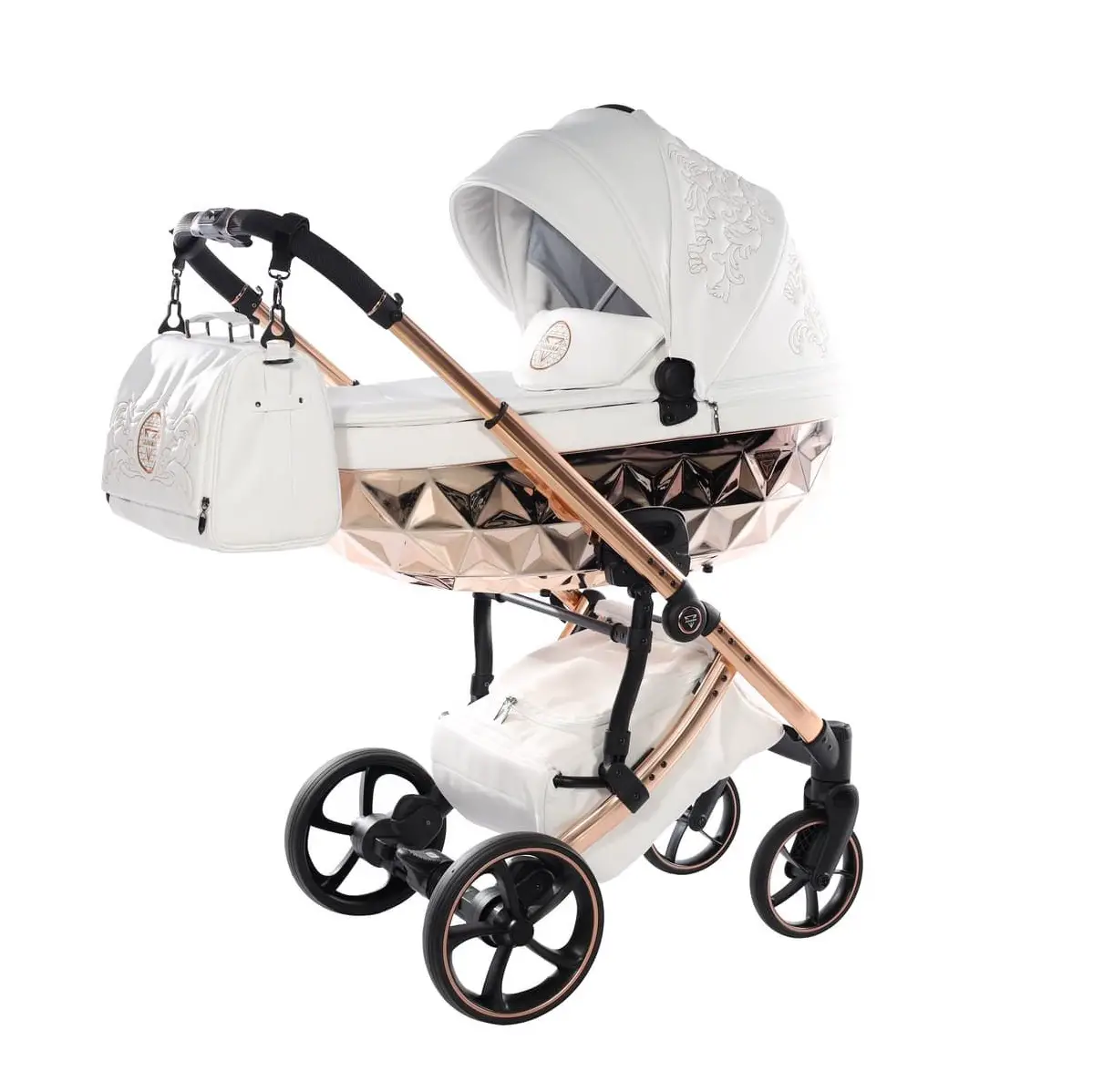 Junama Tailor 2 In 1 Ecopelle White/rosegold Navicella Glossy Rosegold Telaio Rosegold