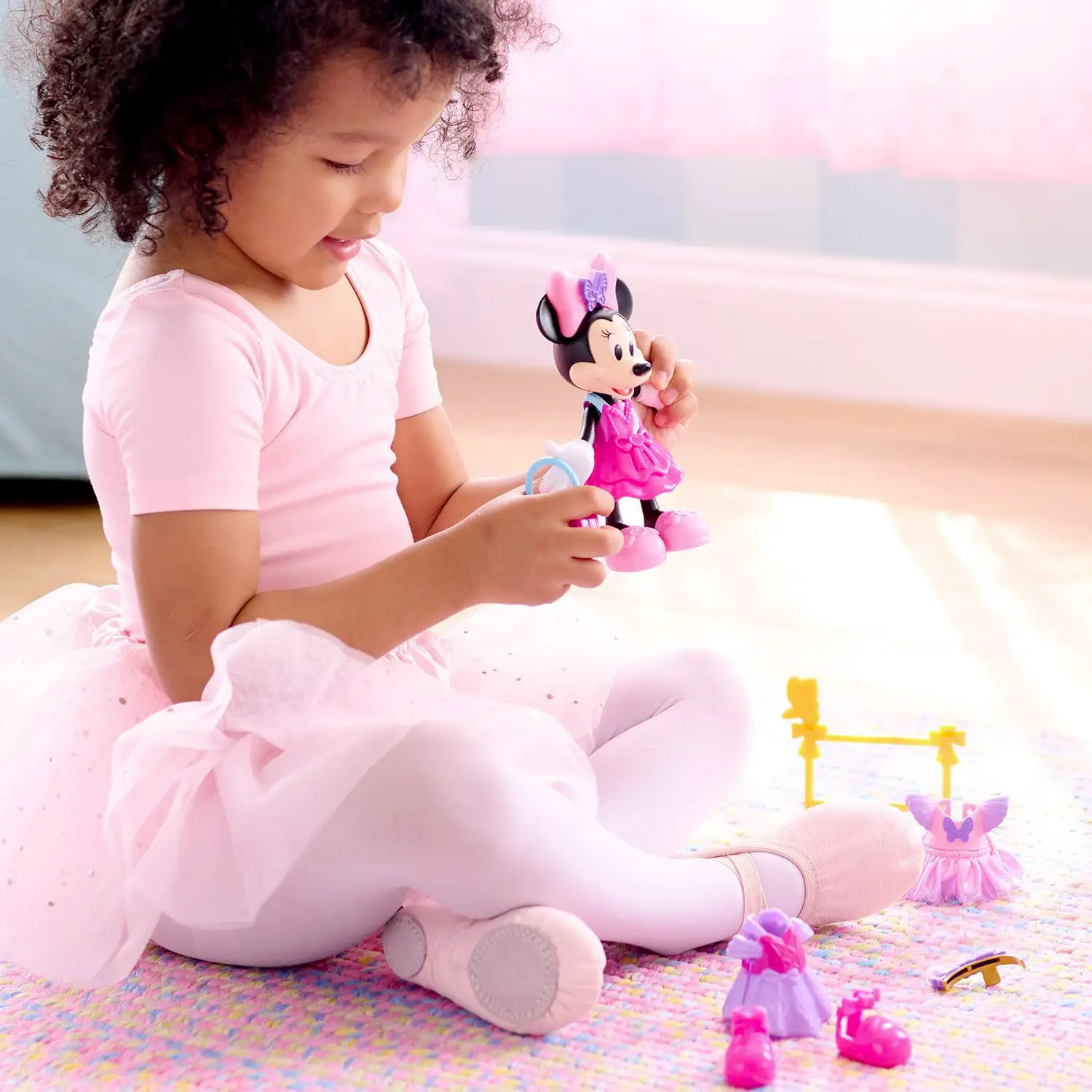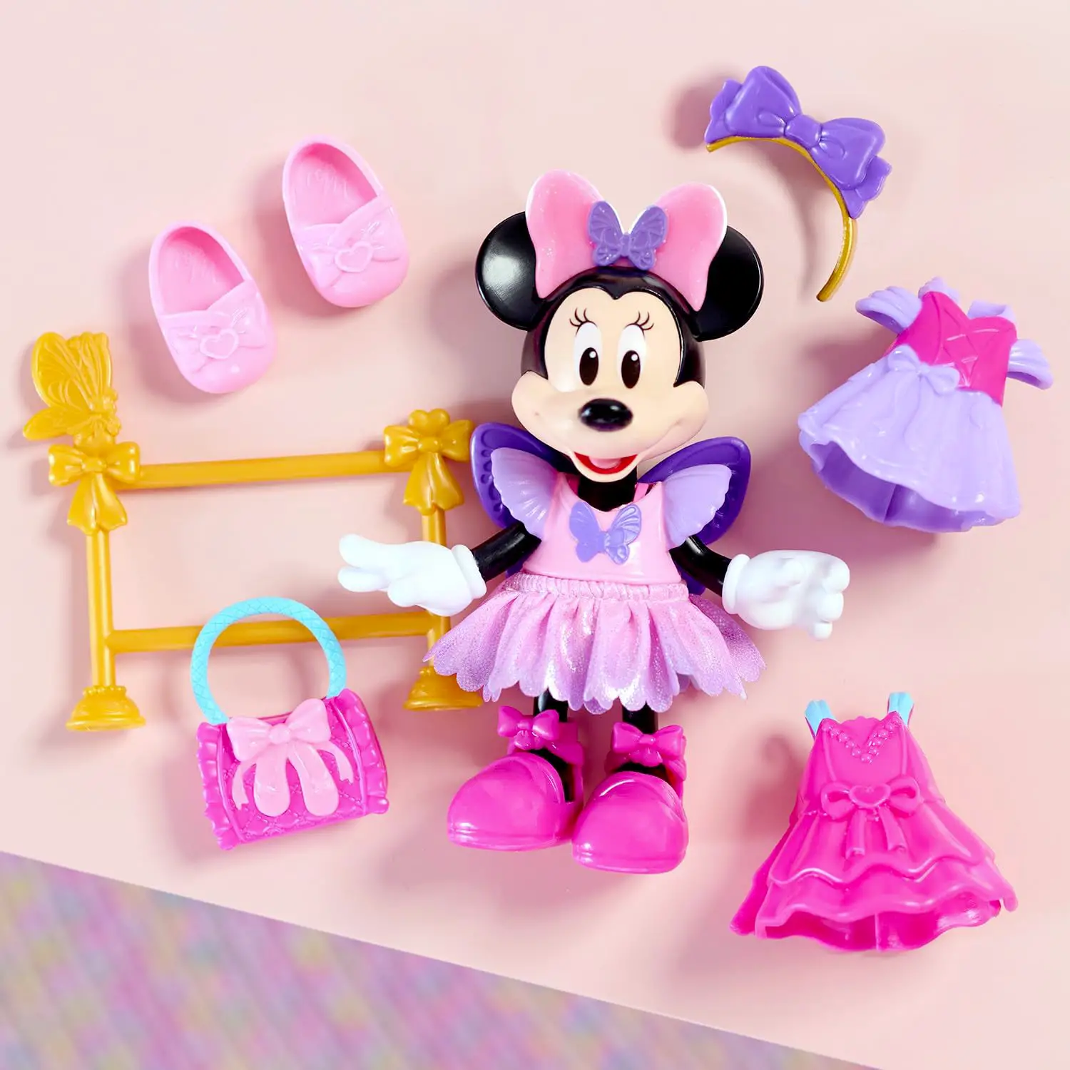 Accessori per creare look da sogno – Con scarpe, borsetta, fasce e sbarra da danza, i bambini possono combinare outfit e accessori per inventare ogni giorno un look nuovo per Minni.