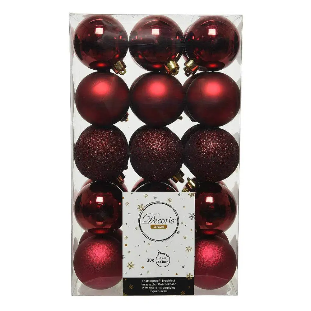 Box 30 Sfere di Natale - Diametro 6 cm - Bordeaux