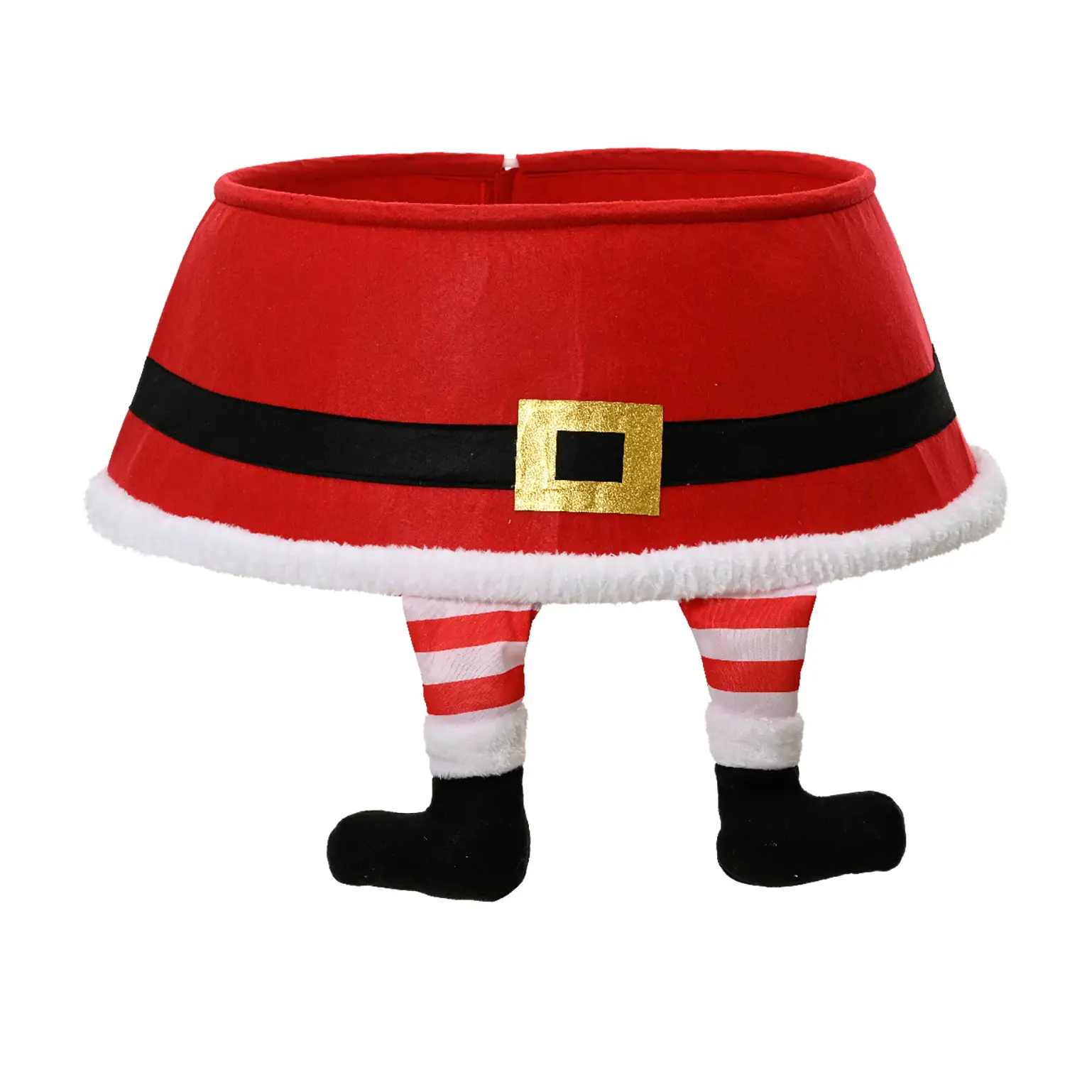 Design Originale e Divertente: Questo copribase per albero di Natale è decorato come il corpo di Babbo Natale, con gambe e cintura, per aggiungere un tocco spiritoso e natalizio alla tua casa.