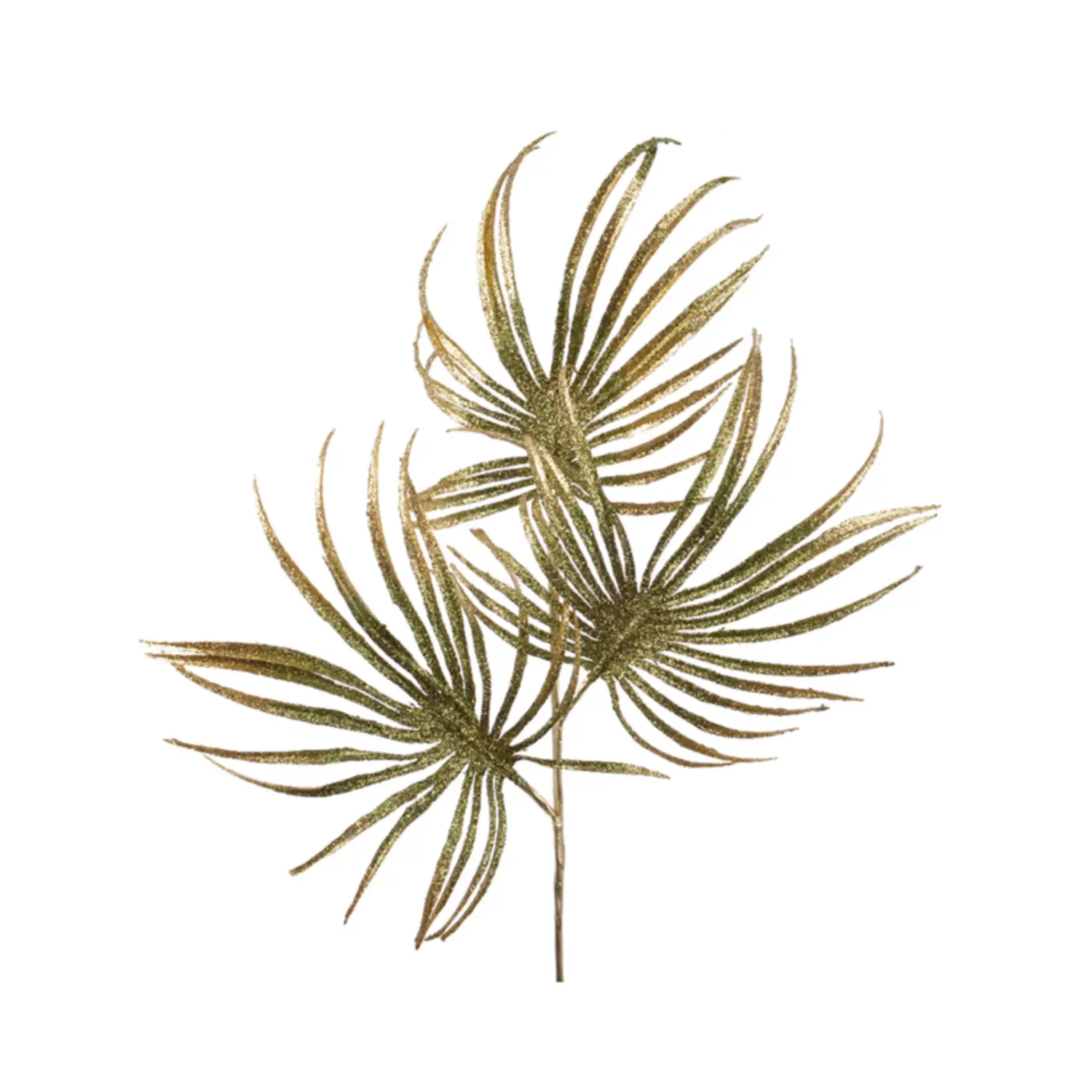 Foglia Decorativa con Effetto Spray Glitter Verde/Oro – 23x67 cm