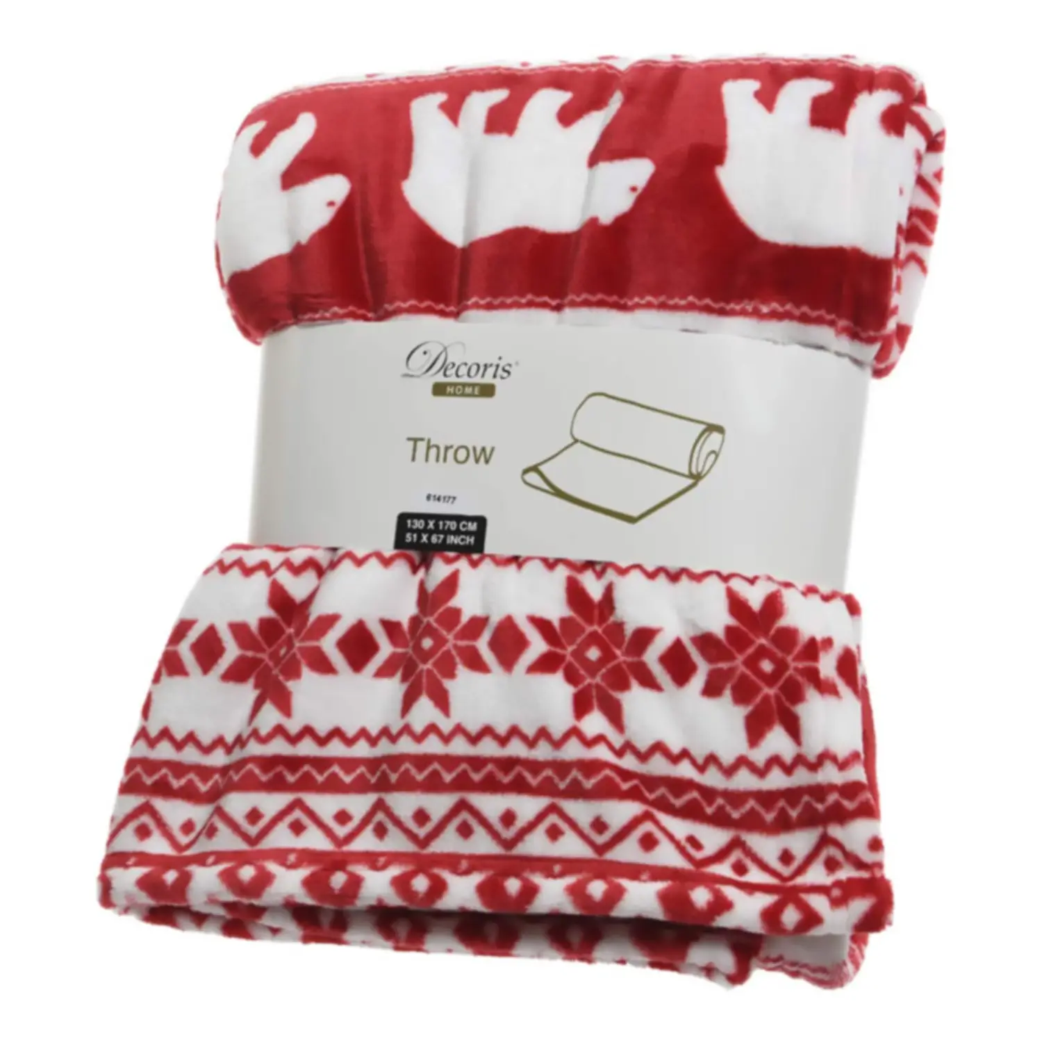 Plaid in Poliestere con Motivi Natalizi Rosso/Grigio Assortito