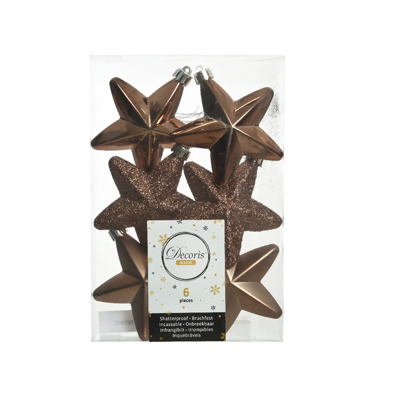 - ✅ Set di 6 stelle decorative in tonalità calde e naturali ispirate al legno di noce.
