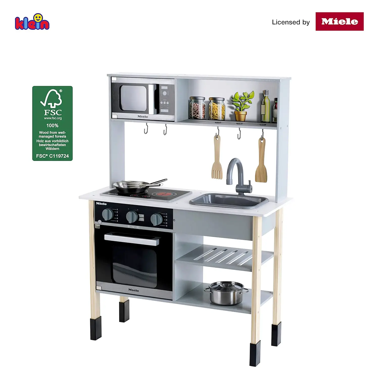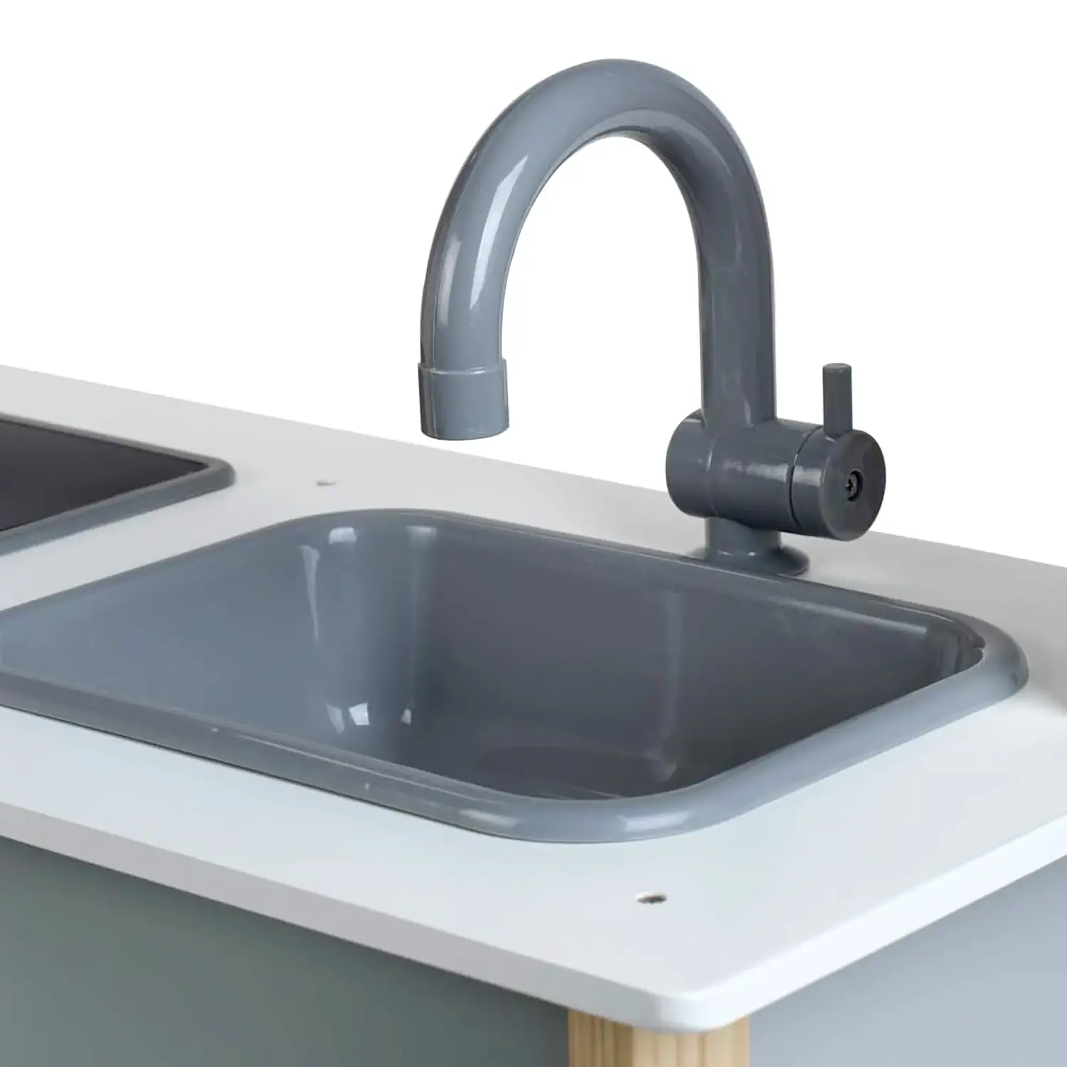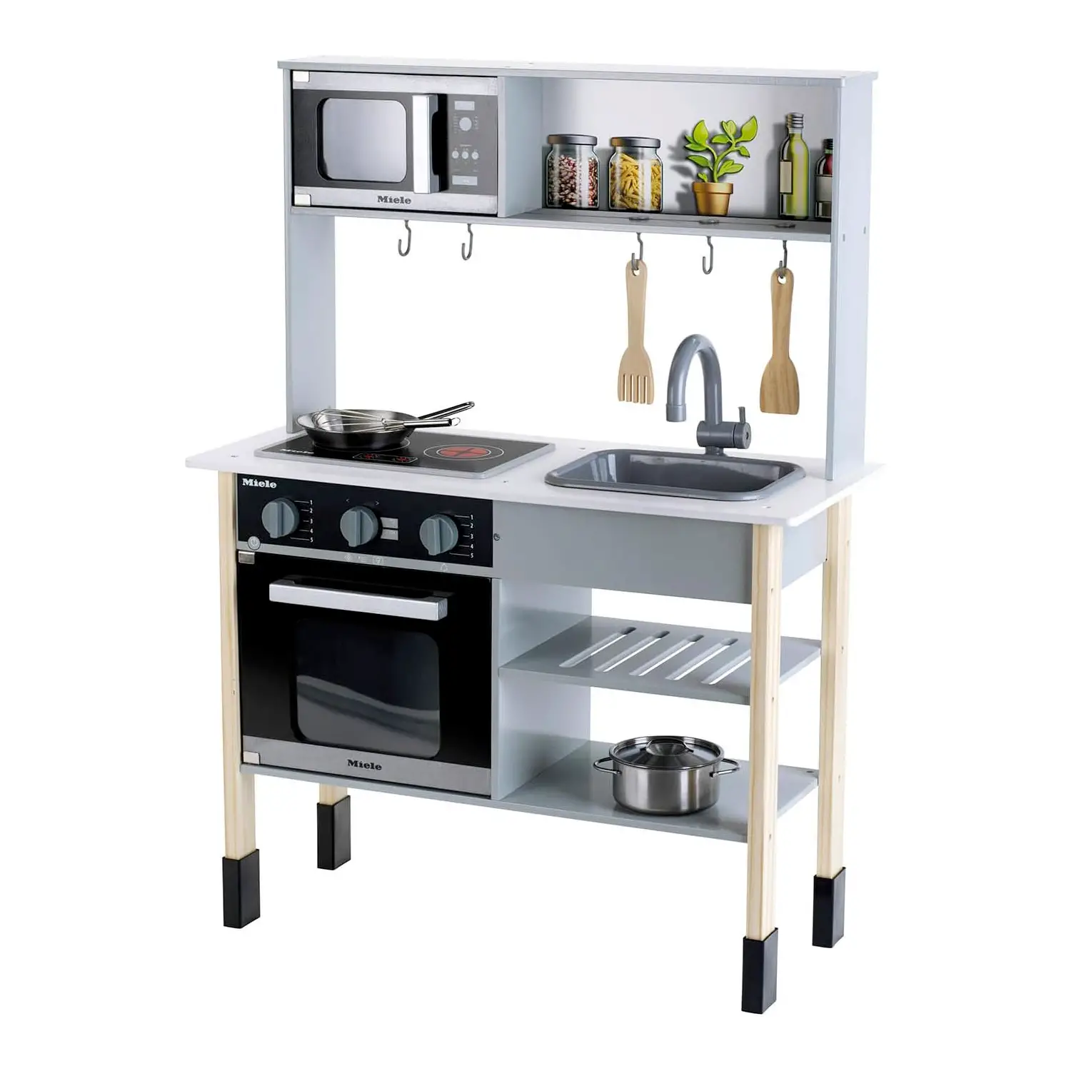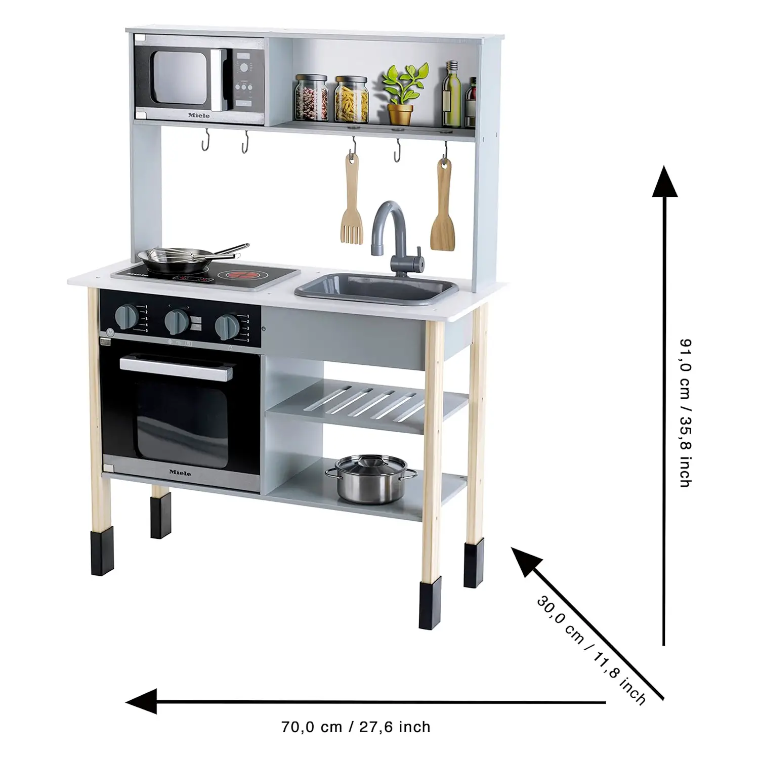 Dotata di elettrodomestici e accessori di qualità - Questa cucina giocattolo include fornello, microonde, lavello estraibile e stoviglie in metallo e legno, ideali per un’esperienza di gioco realistica.