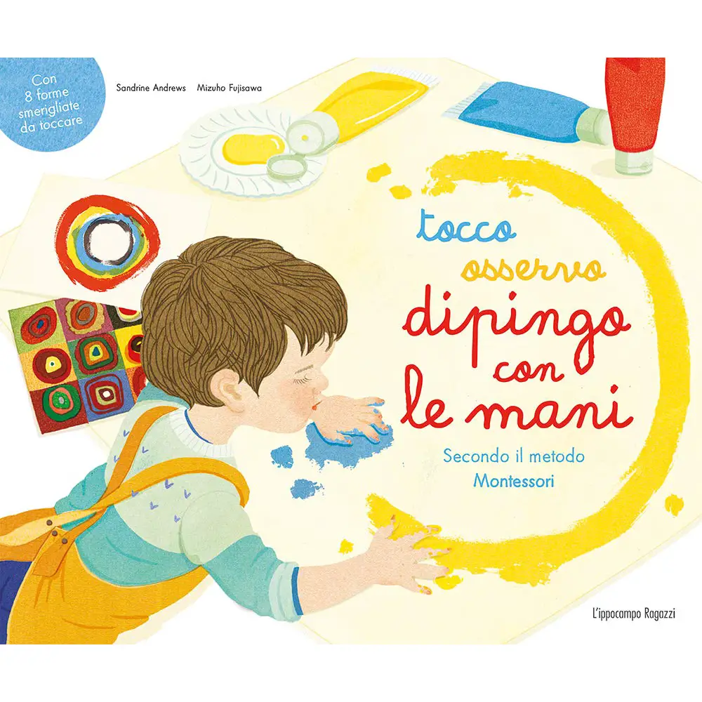 Tocco Osservo Dipingo con le Mani guida i piccoli artisti attraverso quattro fasi: tocco, imito, osservo e invento, sviluppando abilità manuali.