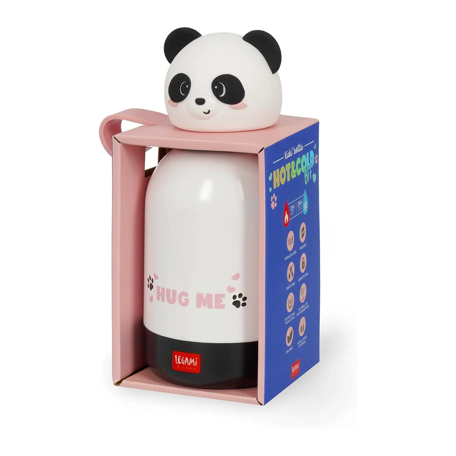 Isolamento termico efficace La Borraccia Termica per Bambini Legami Hot&Cold BFF – Panda mantiene le bevande calde fino a 12 ore e fredde fino a 24 ore, grazie alla struttura a doppio strato in acciaio inox 188 e alla chiusura ermetica.