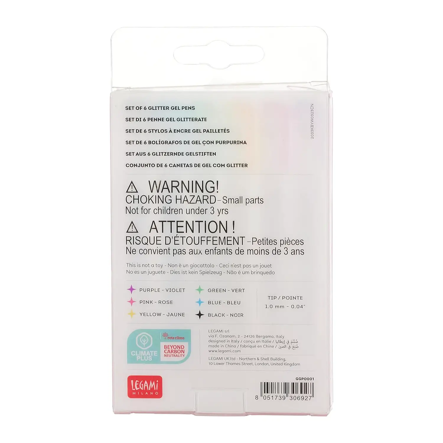 Legami - Set di 6 Mini Penne Gel Glitterate,Shine Like a Diamond Multicolor