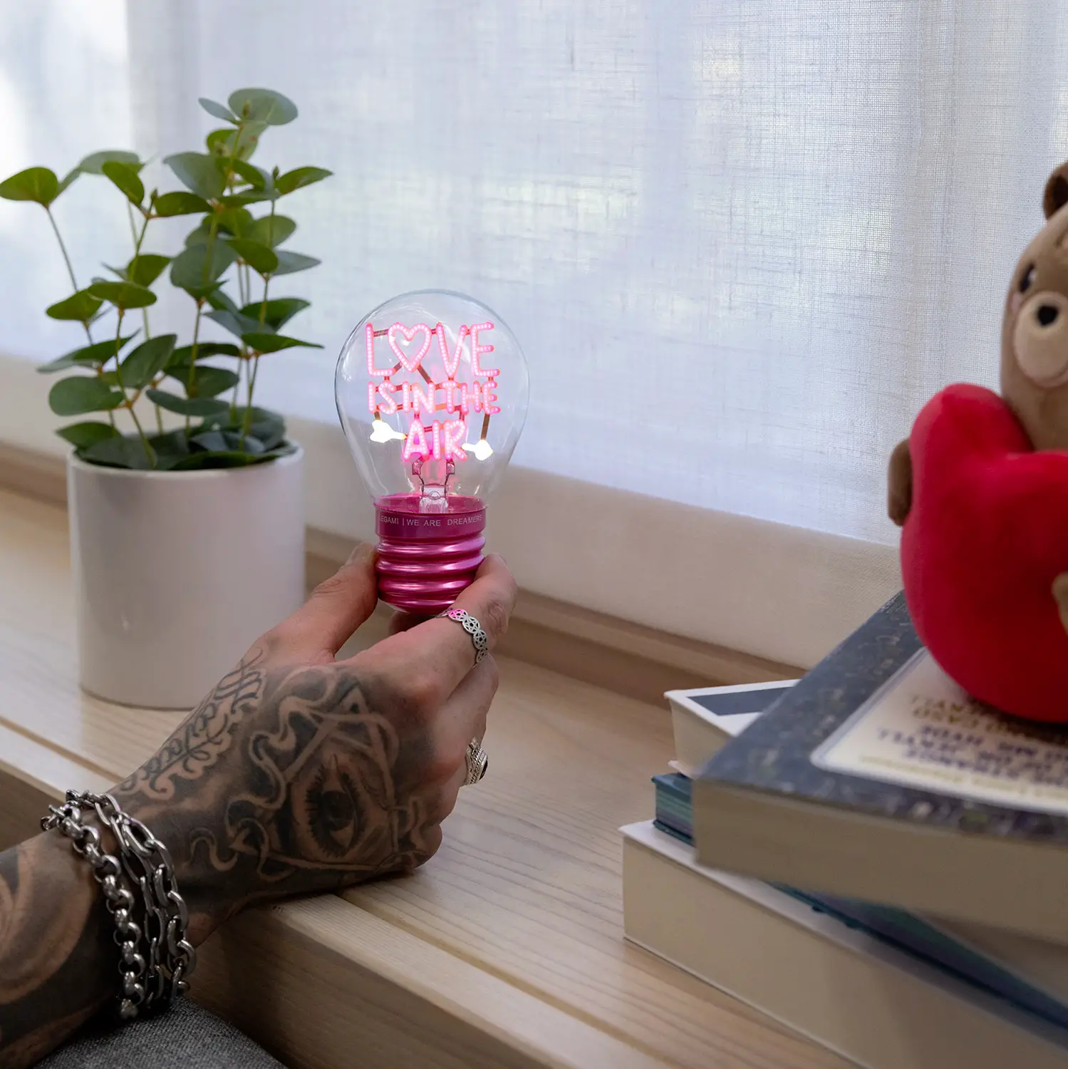 Lampada romantica da tavolo Legami – La Bulb Fiction Love is in the Air di Legami è una lampada decorativa unica, pensata per illuminare gli spazi con un messaggio d’amore sempre acceso.