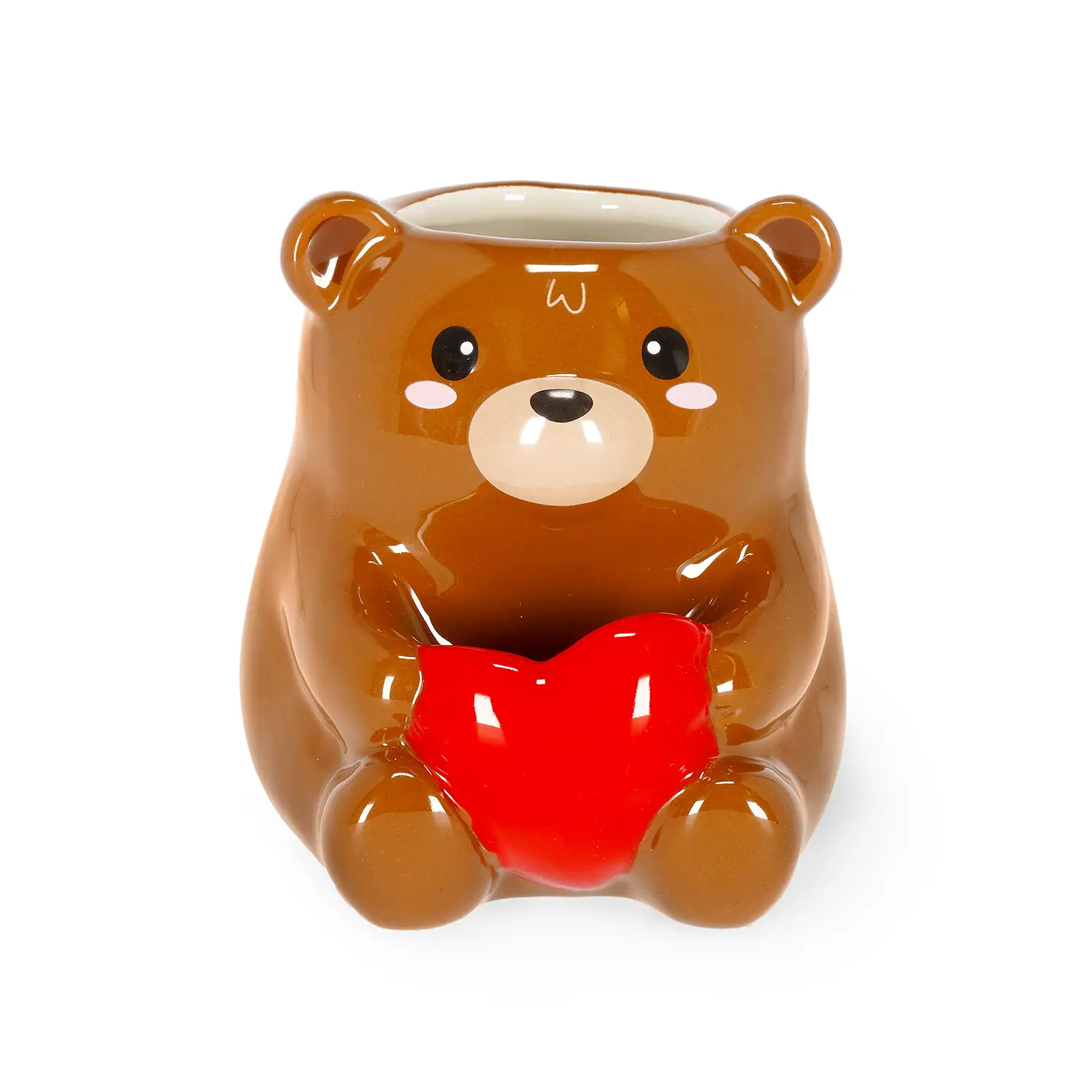 Design tenero e originale – Un adorabile orsetto dipinto a mano che stringe un cuore porta-graffette, pensato per decorare la scrivania con un tocco dolce, affettuoso e raffinato.