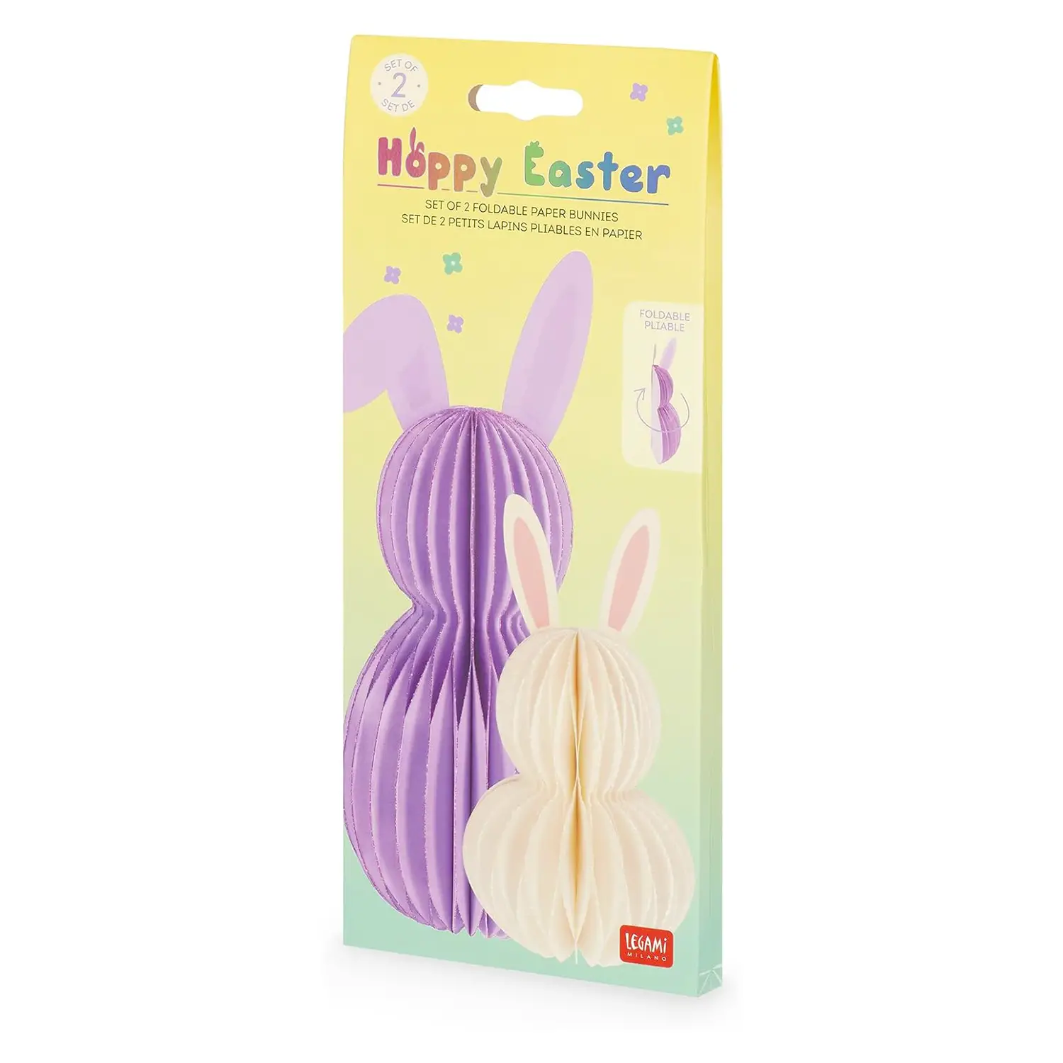 Decorazioni Pasquali Coniglietti in Carta Il set di 2 coniglietti Hoppy Easter di Legami è una decorazione pasquale originale perfetta per addobbare casa, ufficio o tavola durante le festività.