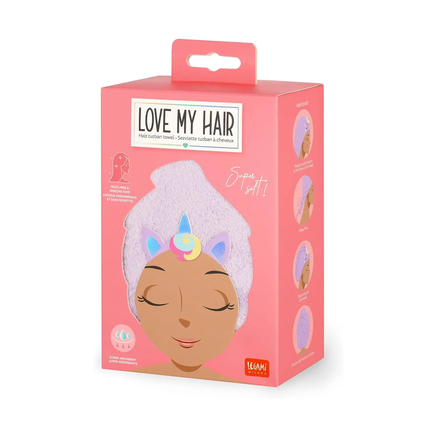 Legami - Turbante per Capelli Love My Hair, Asciugatura Rapida, in Microfibra, Tema Unicorno