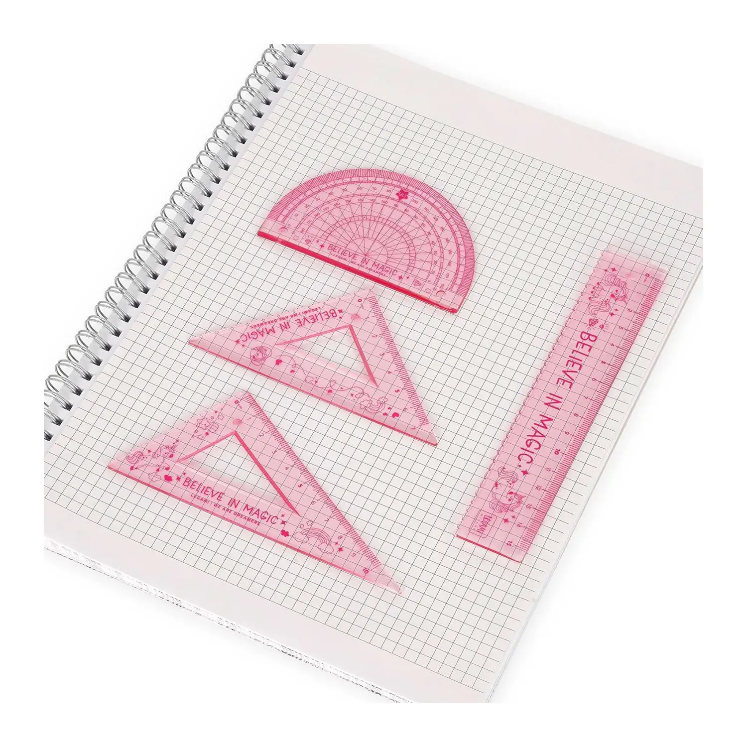 Set Righello da 15 cm, Squadra 60° da 10 cm, Goniometro 180°- Unicorn