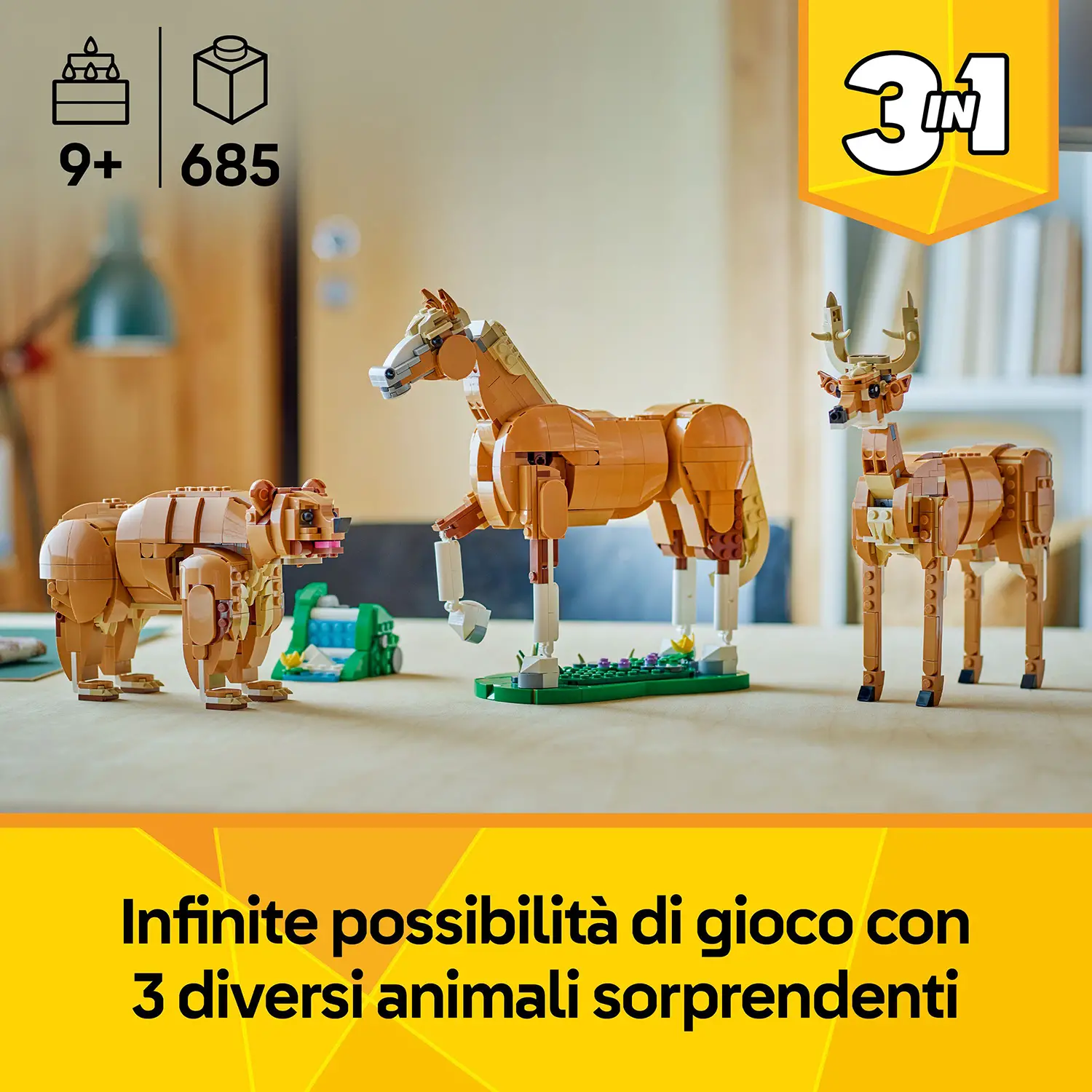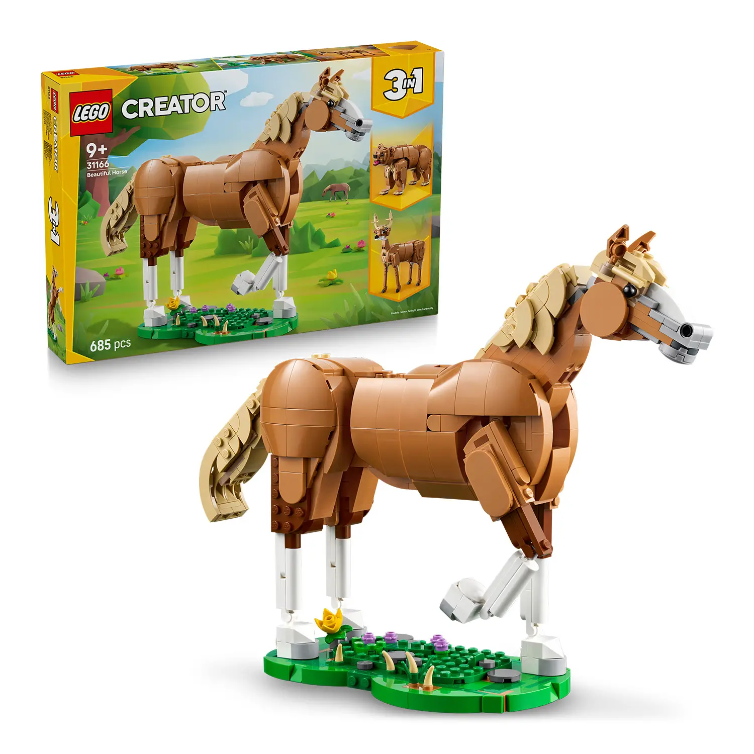 LEGO Creator 3in1 Cavallo Meraviglioso (31166) è il set ideale per bambini e bambine da 9 anni in su che amano gli animali e le costruzioni creative. Con gli stessi mattoncini si possono realizzare 3 modelli diversi: un cavallo snodabile, un orso con cascata o un cervo elegante.