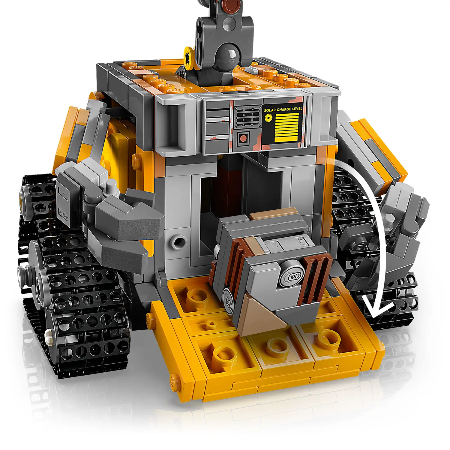 4 personaggi indimenticabili il kit include WALL-E, EVE, M-O e Hal, ciascuno con dettagli autentici tratti dal film, inclusa la celebre piantina nello stivale, simbolo di speranza e rinascita.