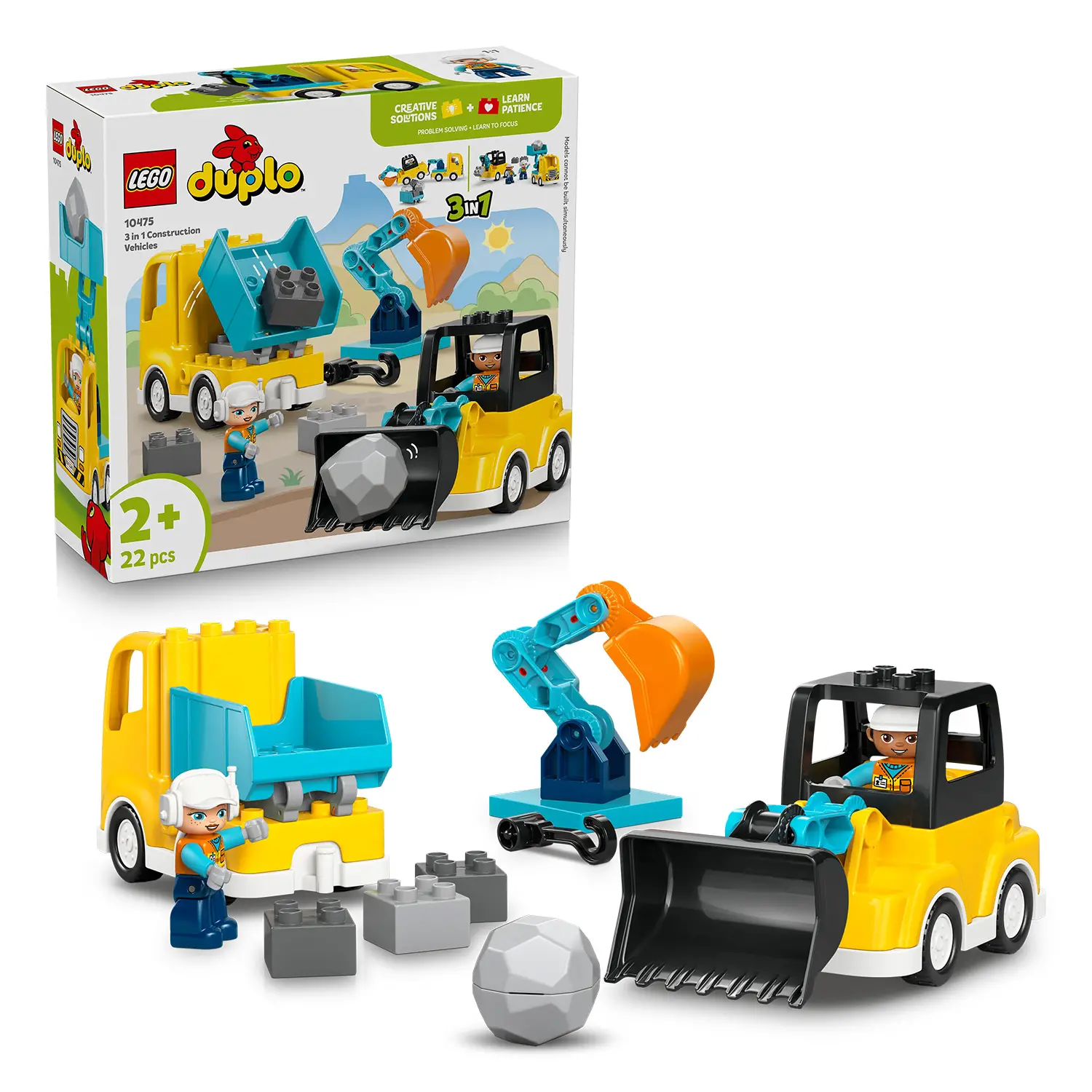 Gioco didattico Montessori 2+ LEGO DUPLO 10475 Veicoli da Cantiere 3 in 1 è un gioco educativo pensato per bambini e bambine dai 2 anni in su, ideale per introdurre il mondo delle costruzioni e dei cantieri attraverso il gioco creativo e l’apprendimento attivo.