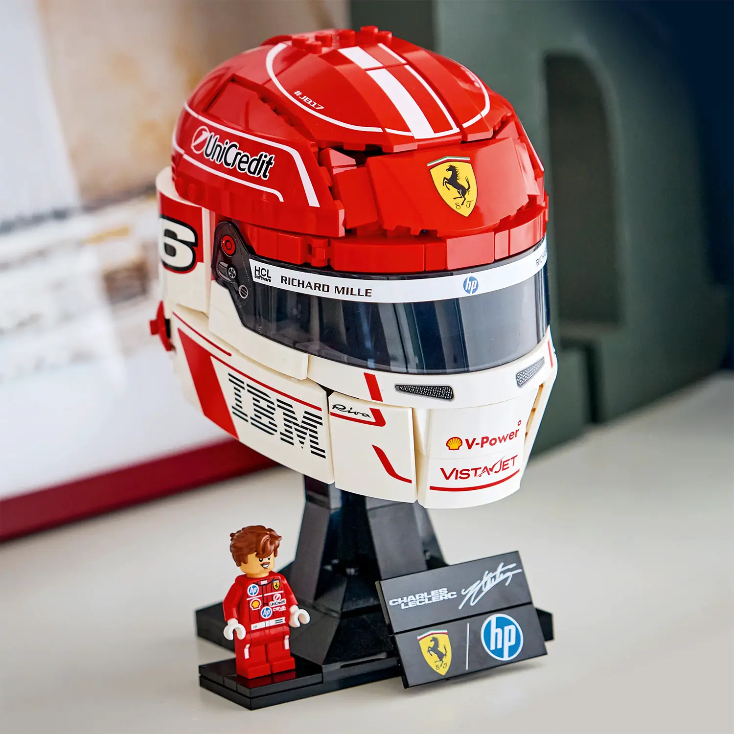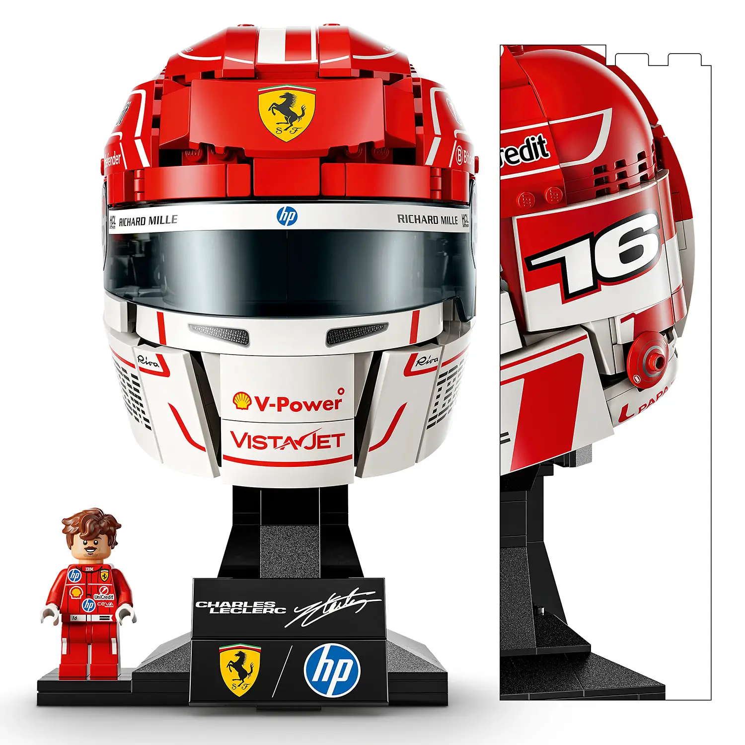 Minifigure esclusiva da collezione Il set include una minifigure dedicata a Charles Leclerc, completa di dettagli autentici. La presenza della targhetta personalizzata con il logo del pilota aggiunge valore al modello, trasformandolo in un vero pezzo da esposizione per collezionisti LEGO e fan della Formula 1.