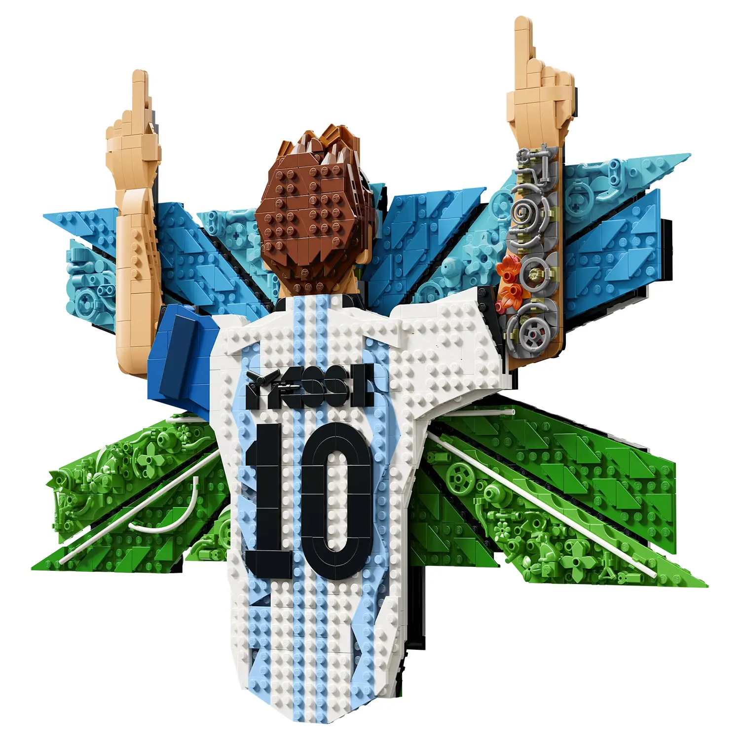 Wall Art 3D fai da te Realizza una straordinaria decorazione murale in mattoncini che raffigura Messi nella sua iconica posa celebrativa, con il dito rivolto verso il cielo dopo un goal.