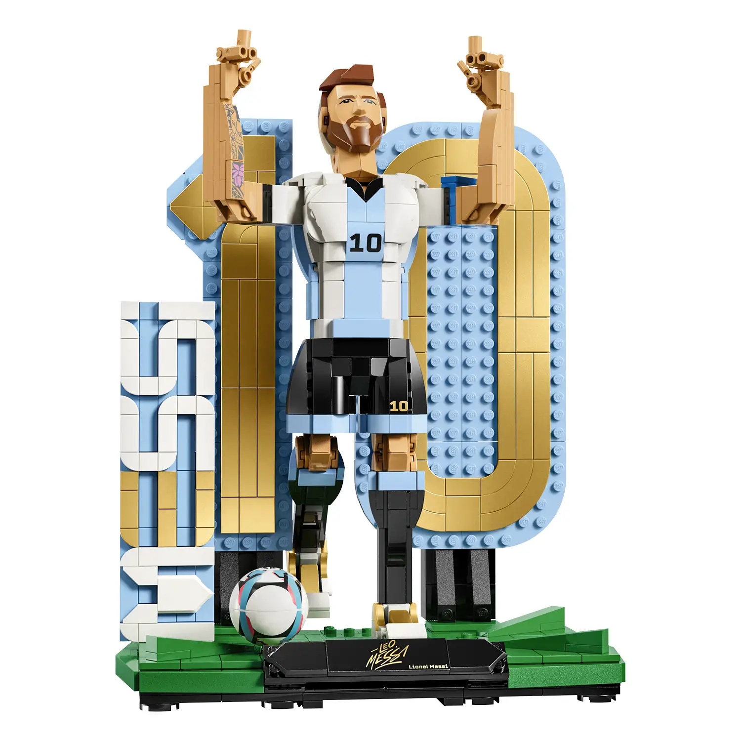 Dettagli esclusivi e accessori Il kit include un grande numero 10, la scritta MESSI, una targhetta con il nome e un elemento pallone da calcio. Il volto costampato garantisce maggiore realismo, rendendo il modello ancora più fedele al campione.