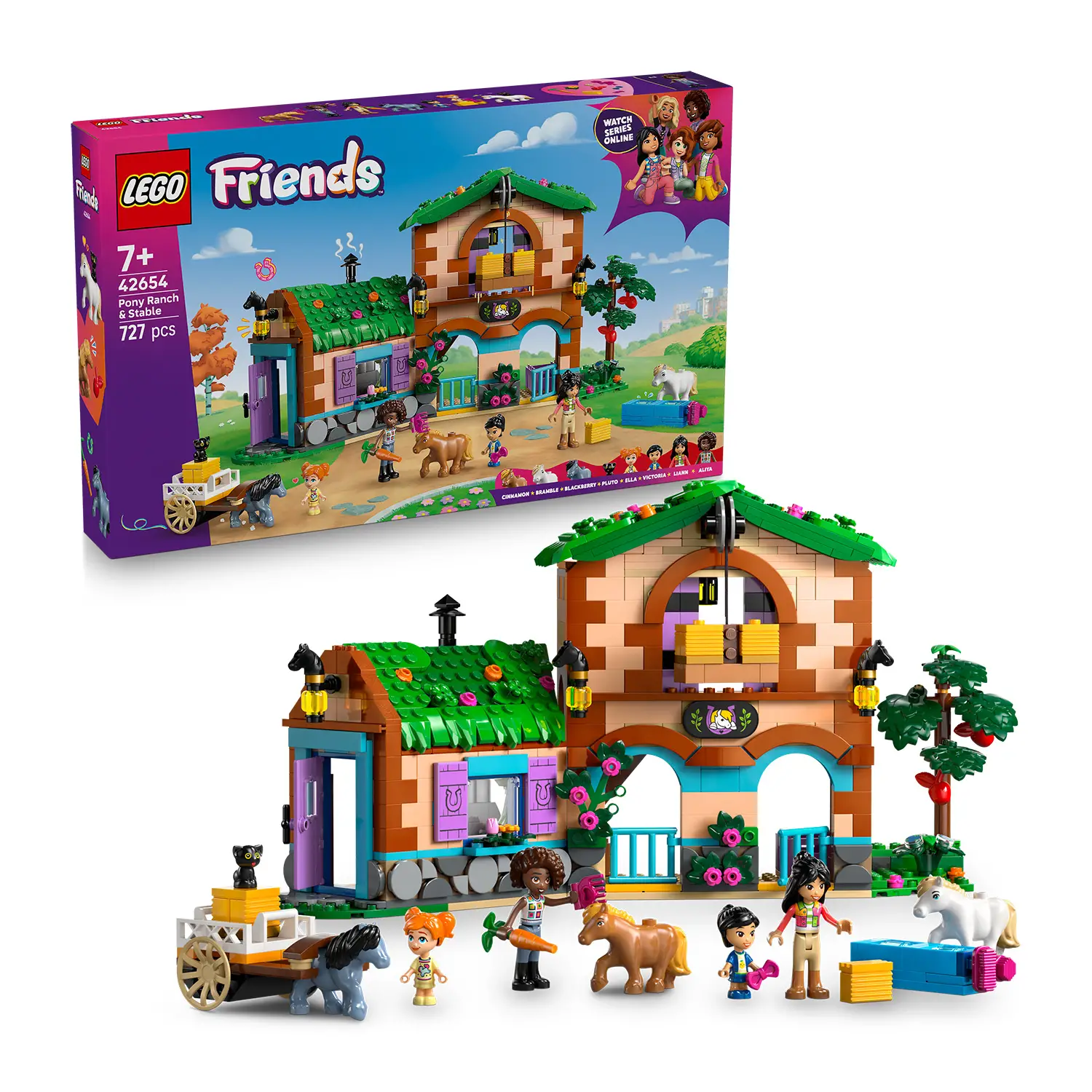 Un set completo per gli amanti degli animali Il LEGO Friends Ranch e Scuderia dei Pony 42654 è un set ideale per bambine e bambini da 7 anni in su che adorano i cavalli giocattolo. Contiene 727 pezzi, tra cui una stalla, carro, zona giorno e 4 personaggi.