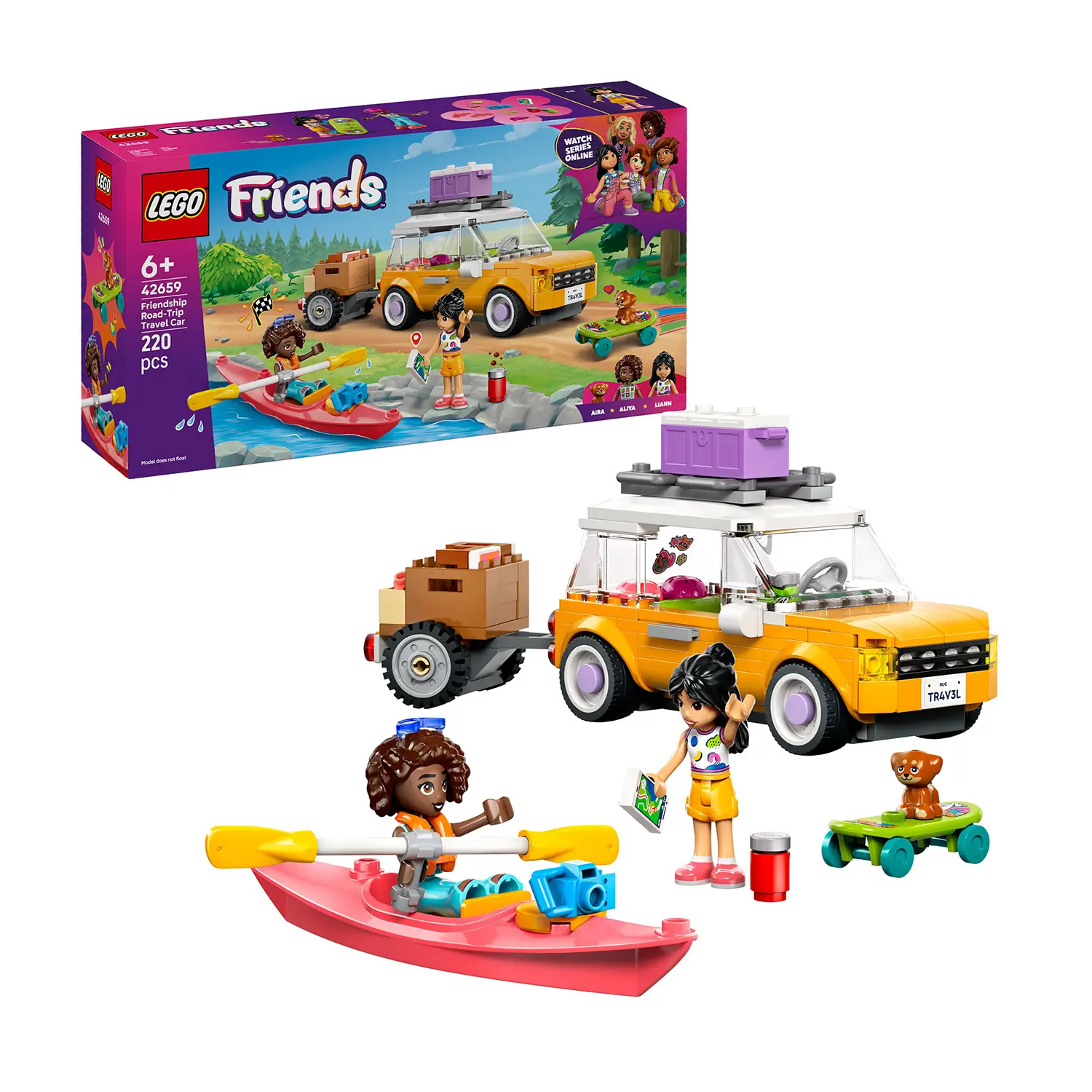 Avventure in campeggio con LEGO Friends Il set LEGO Friends Viaggio in Auto con il Cucciolo (42659) offre un’esperienza di gioco immersiva per bambine e bambini da 6 anni in su, con auto, rimorchio e accessori outdoor.