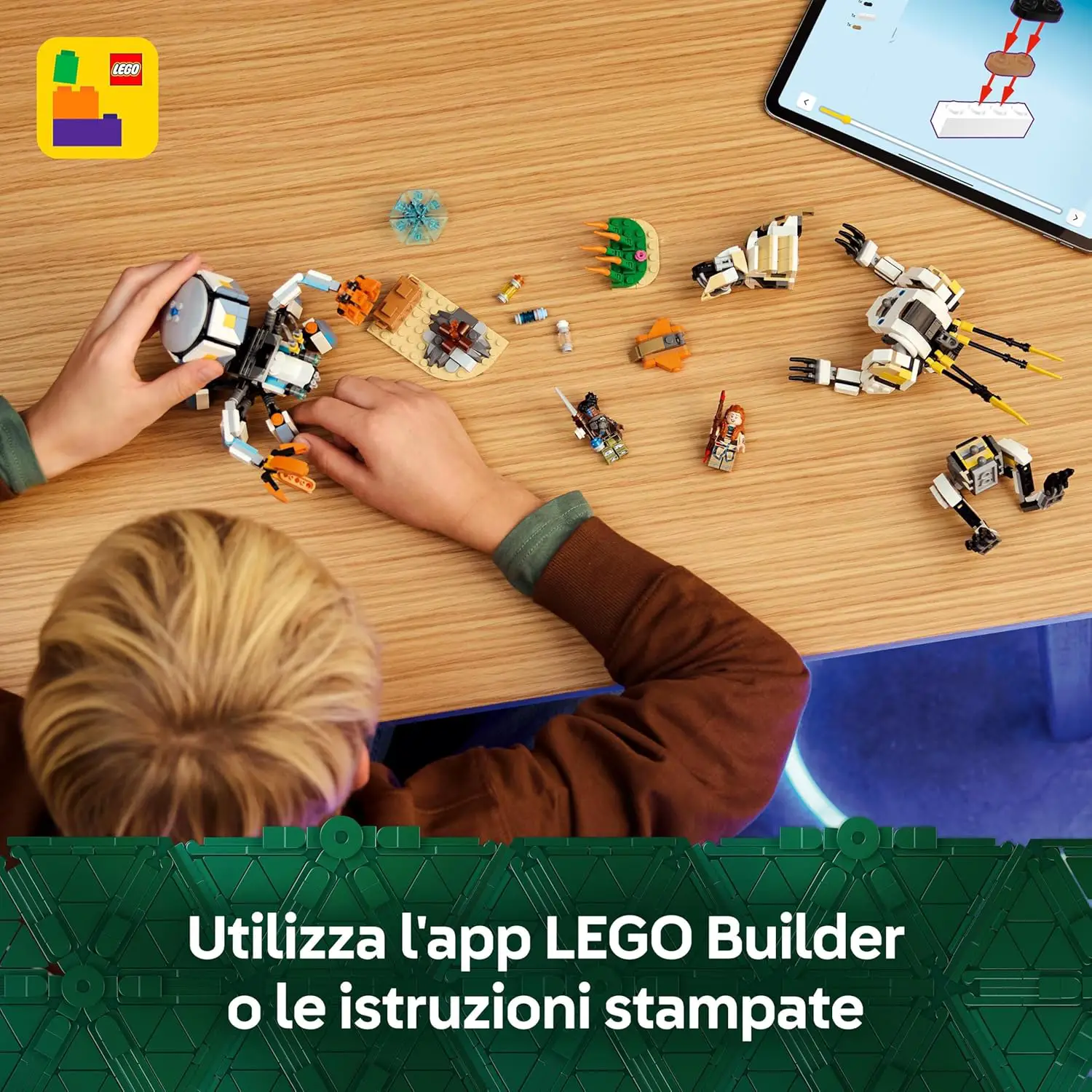 Un’epica avventura LEGO Horizon Adventures Il set LEGO Aloy e Varl Contro Arcapode e Secodonte trasporta i giovani fan nel mondo di Horizon Adventures. Perfetto per bambini e bambine da 9 anni in su, permette di vivere emozionanti battaglie e costruire scenari fantasy ricchi di azione.