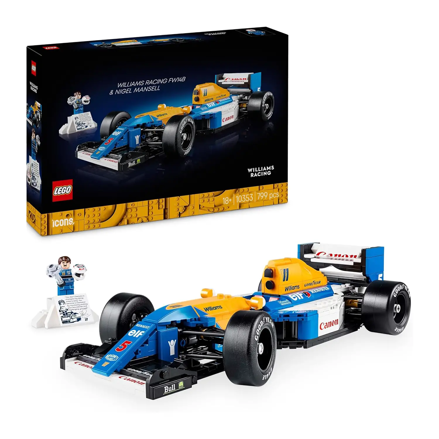- ✅ Modellino LEGO Icons della Williams Racing FW14B di Nigel Mansell, perfetto per adulti appassionati di Formula 1.
