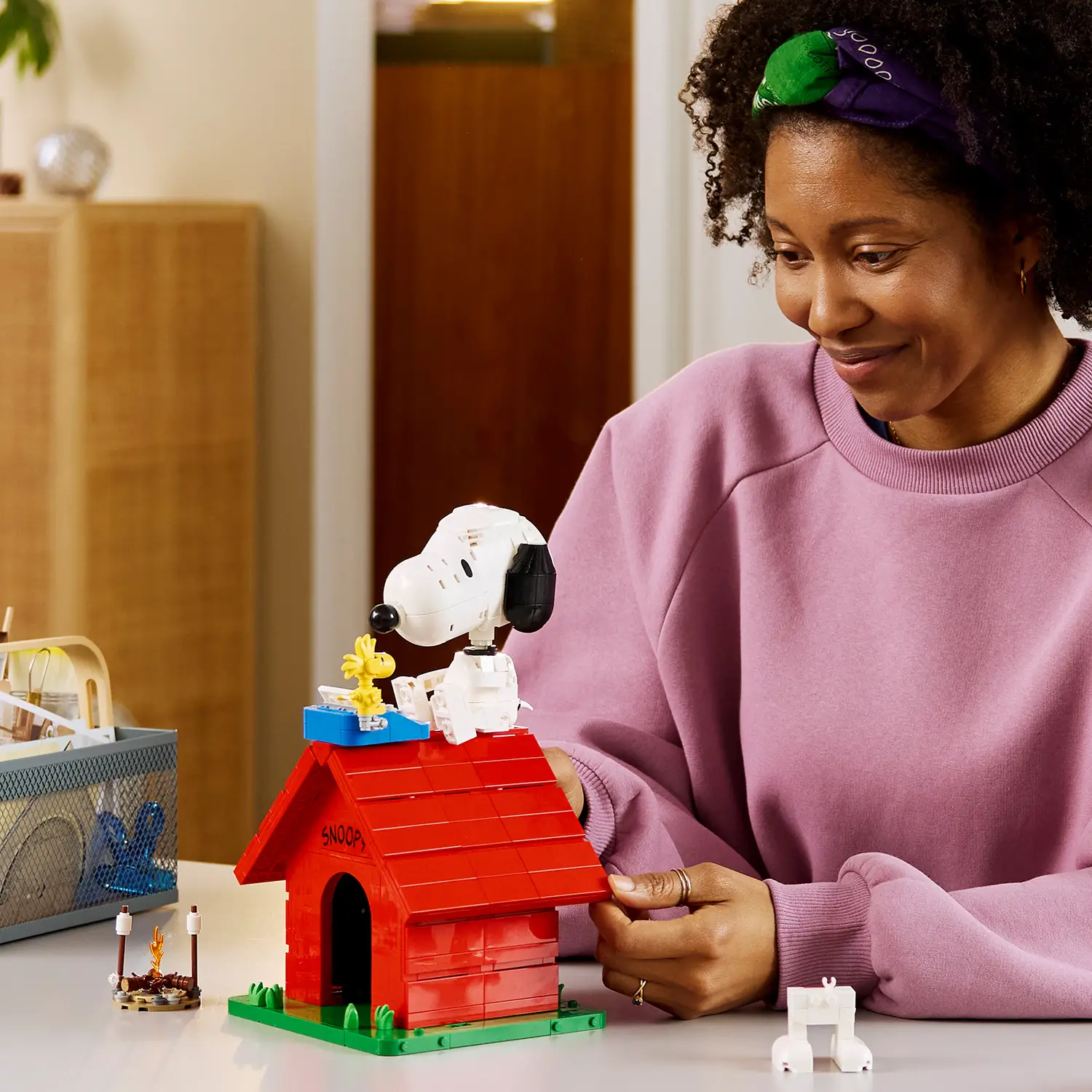 Personaggi iconici Snoopy e Woodstock Include le figure dettagliate di Snoopy e Woodstock, ricreate in versione LEGO. Snoopy è completamente snodabile e può assumere diverse pose, mentre Woodstock completa le scene con il suo stile inconfondibile, rendendo il set perfetto per fan e collezionisti.