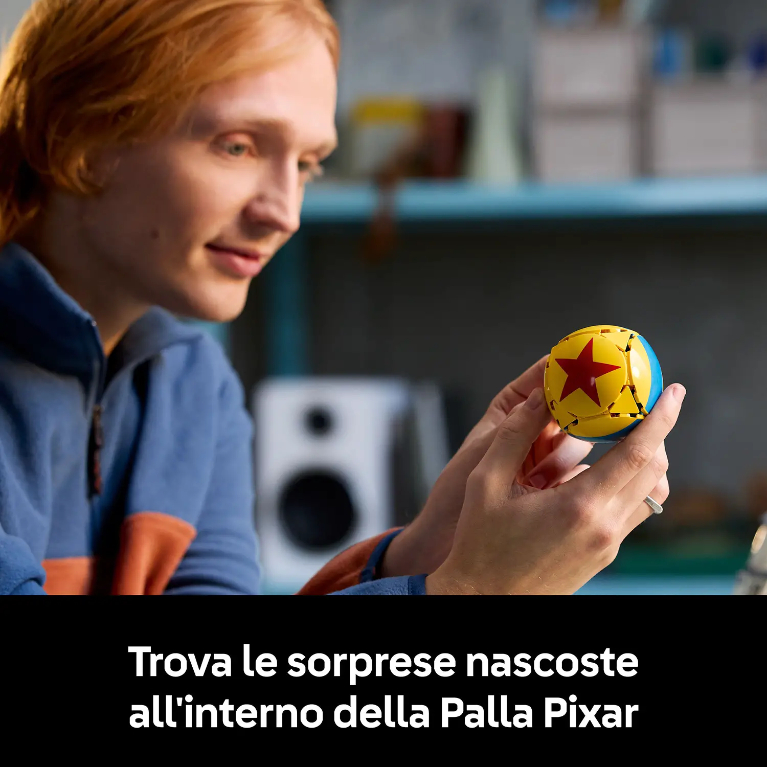 Inclusa la Palla Pixar con easter egg nascosti All’interno della palla costruibile troverai riferimenti segreti a sei film Disney Pixar: da Up a Toy Story, da Monsters & Co. a Ratatouille e altri ancora.