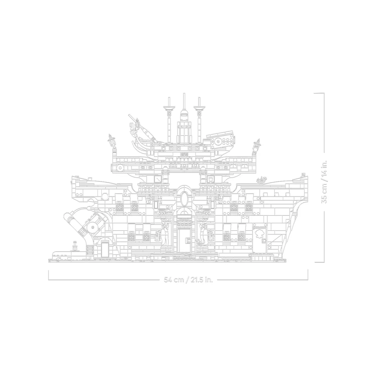 Interni dettagliati e accessibili il modello a forma di nave ospita cucina, sala da pranzo, alloggi di Zeff e stanza del tesoro, con pareti apribili e accessori autentici per arricchire il gioco di ruolo.