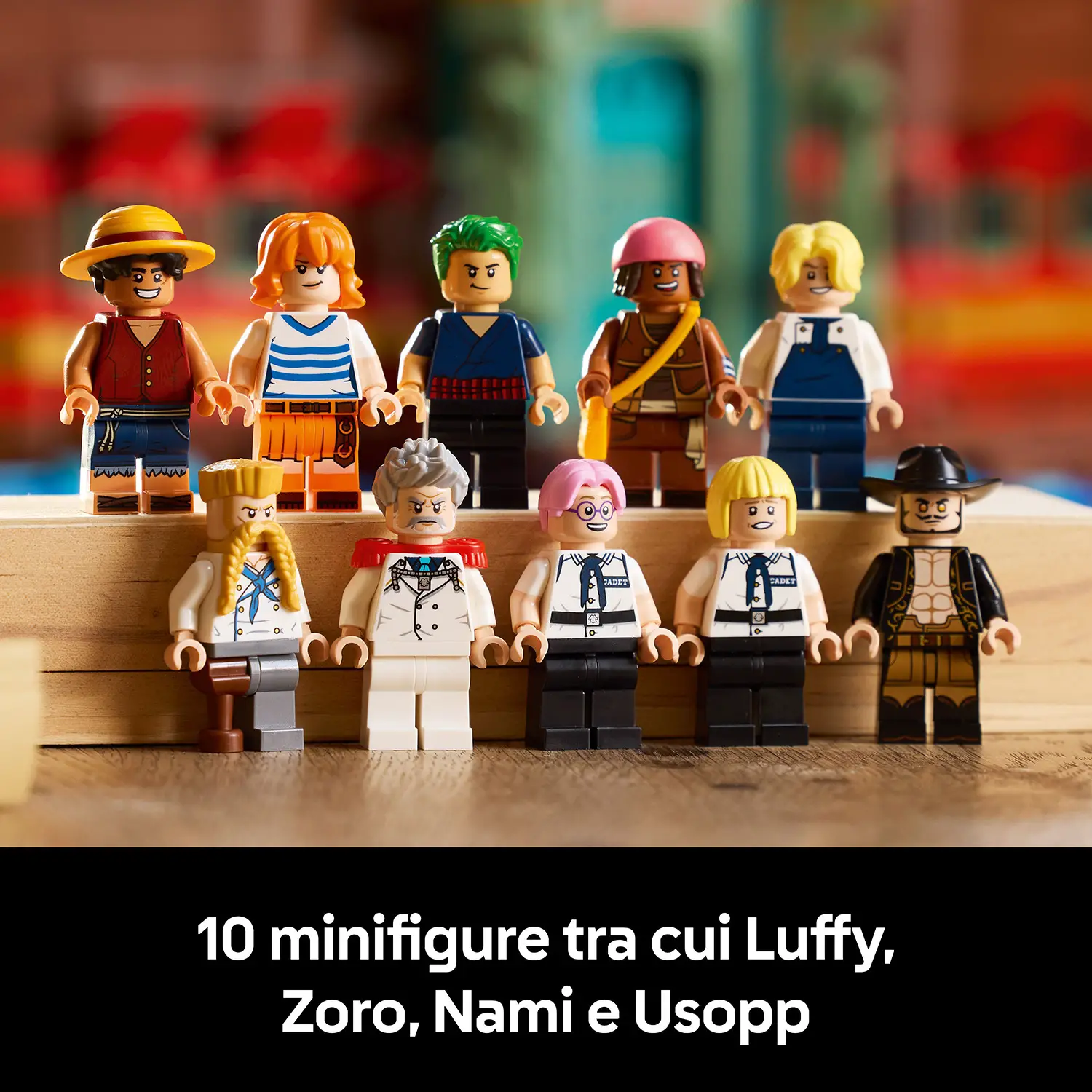 - ✅ 10 MINIFIGURE LEGO: include Luffy, Zoro, Nami, Usopp, Sanji, Zeff, Garp, Helmeppo, Koby e Mihawk per ricreare scene celebri