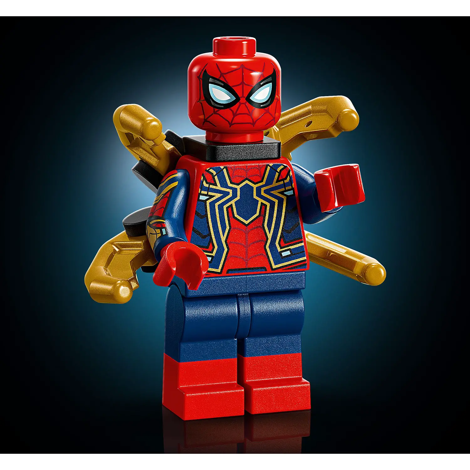 Minifigure esclusiva inclusa il set contiene una minifigure LEGO di Iron Spider-Man e una targhetta con il nome del personaggio, elementi che arricchiscono il valore da collezione del modello.