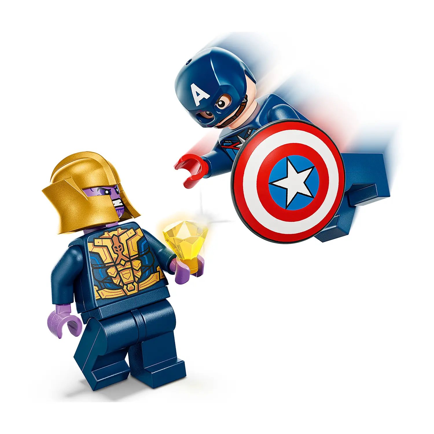 Minifigure incluse – Contiene Captain America con il suo scudo iconico e Thanos con il casco, pronti per lo scontro finale.