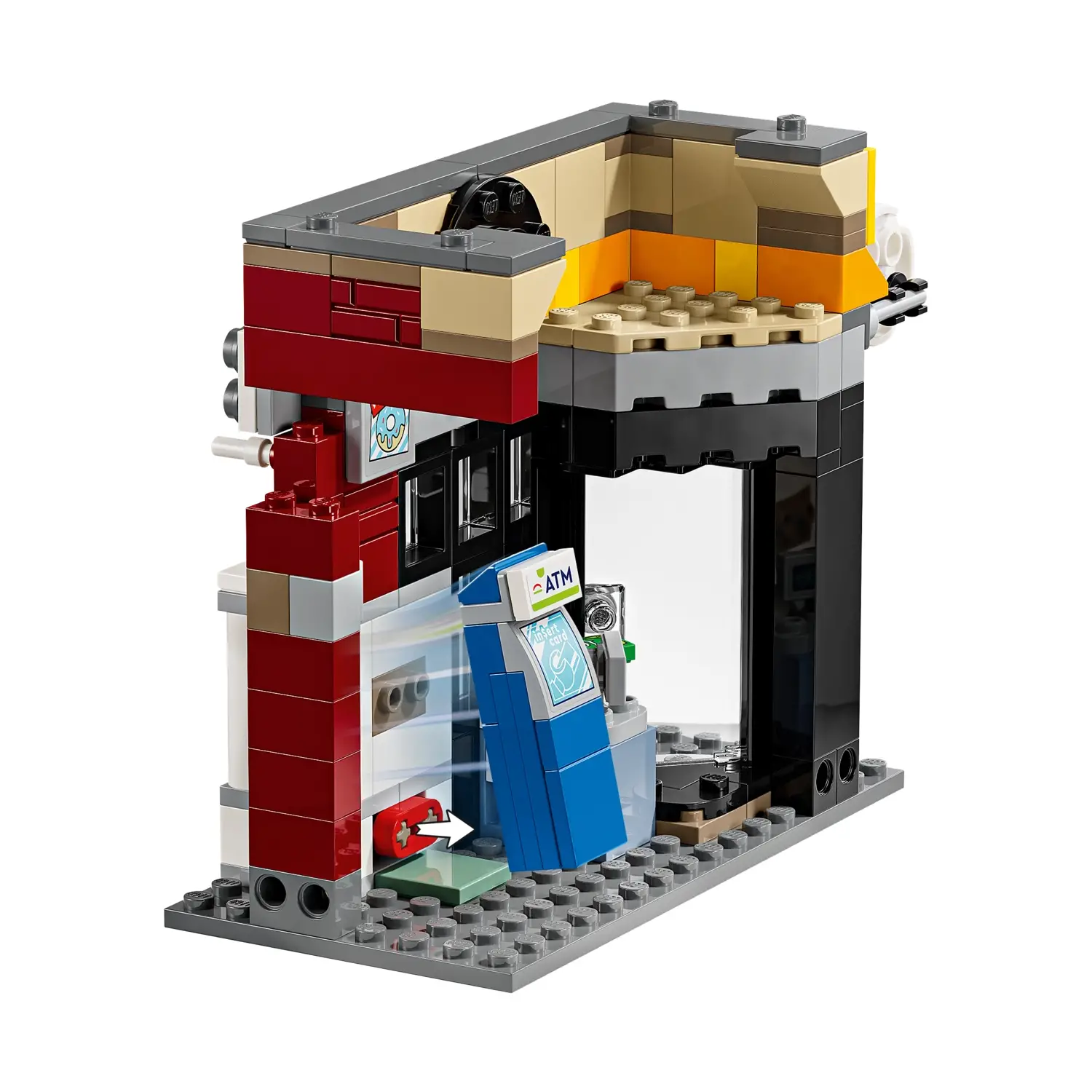 Minimarket con Funzioni Straordinarie Il minimarket è dotato di un muro esplodente che permette di rimuovere il bancomat, creando uno scenario dinamico per il gioco. Dettagli e accessori realistici rendono ogni avventura ancora più coinvolgente.