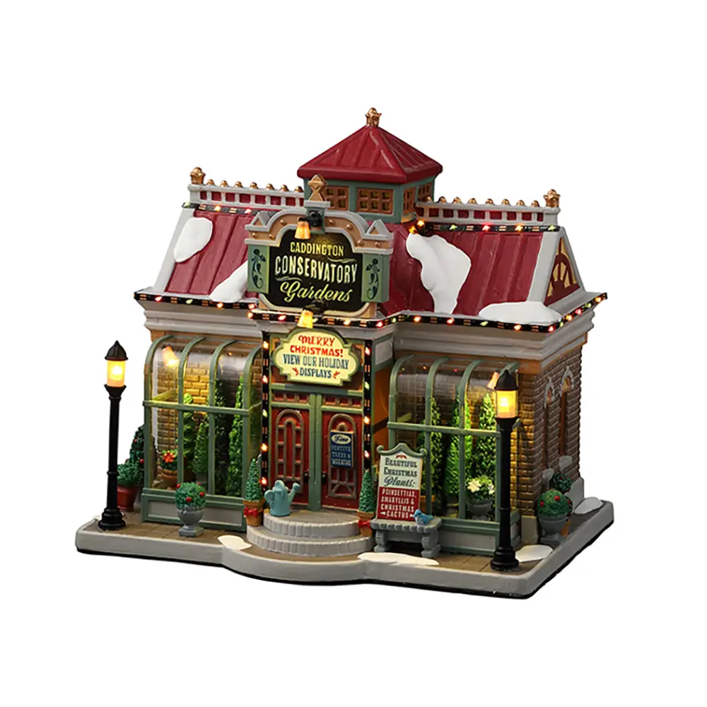 Il Giardino d’Inverno di Caddington è un pezzo illuminato Lemax che unisce tradizione e magia natalizia, rendendo il tuo villaggio un luogo più vivo, colorato e accogliente. Perfetto per chi desidera combinare verde, luce e atmosfera festosa in un unico edificio.