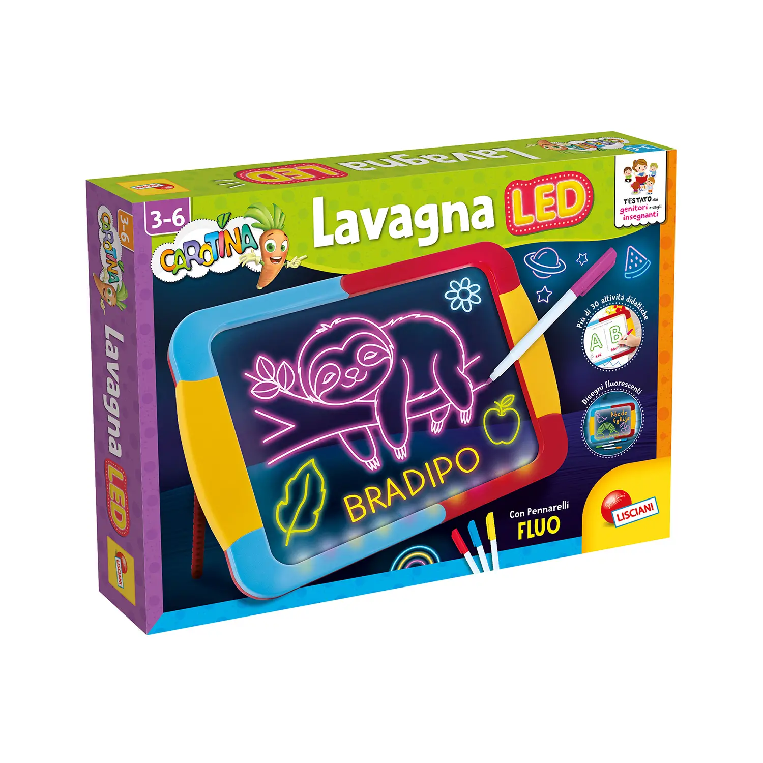La Carotina Lavagna LED Lisciani è un gioco educativo che permette ai bambini di divertirsi mentre imparano a leggere e scrivere. Questa lavagna speciale è dotata di effetti speciali che rendono i disegni fluorescenti, creando un’esperienza visivamente stimolante.