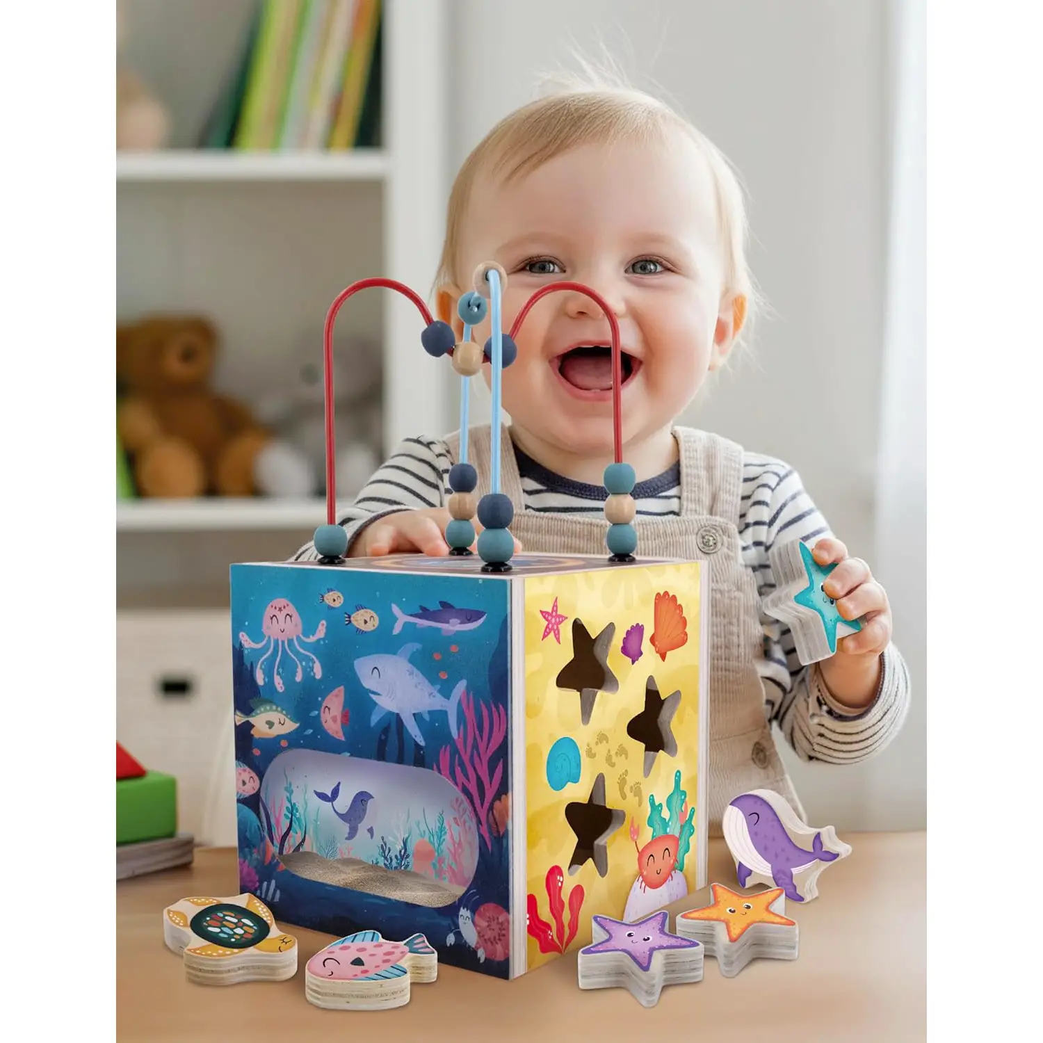 - ✅ Cubo sensoriale Montessori in legno a tema oceano