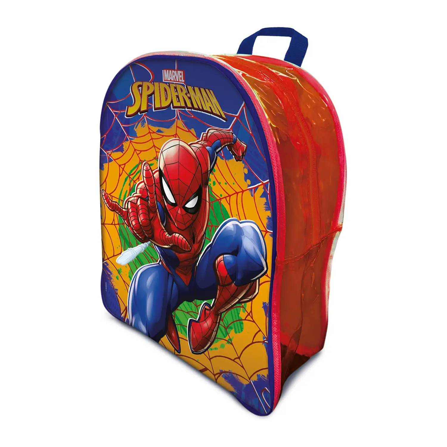 Zaino di Spider-Man comodo e resistente Il gioco è contenuto in un fantastico zainetto Spider-Man, pratico da portare con sé a scuola, in viaggio o a casa di amici, con tutto il necessario sempre a portata di mano.