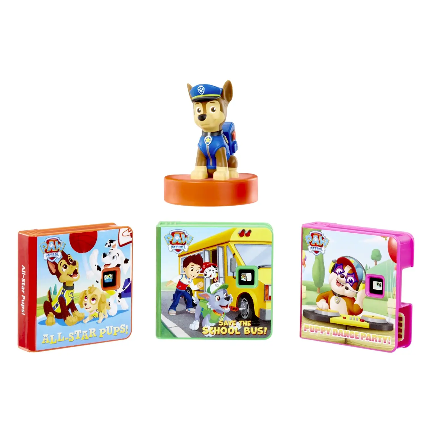 Contenuto del set: Include 3 racconti originali PAW Patrol e 1 personaggio di Chase, che attiva speciali effetti luminosi nella modalità luce notturna per un’esperienza ancora più magica.
