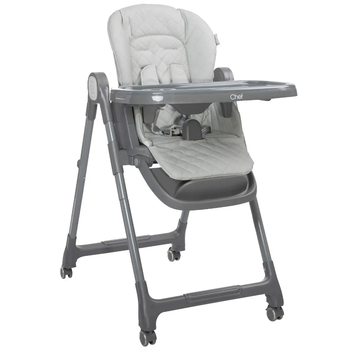 Seggiolone standard (6 mesi - 3 anni | max 15 kg) - Schienale reclinabile in 4 posizioni per il massimo comfort. - Poggiapiedi regolabile in 3 posizioni. - Vassoio doppio con portabicchieri, regolabile in 3 posizioni e rimovibile per una pulizia facile. - Ruote in silicone con freno per un facile spostamento.