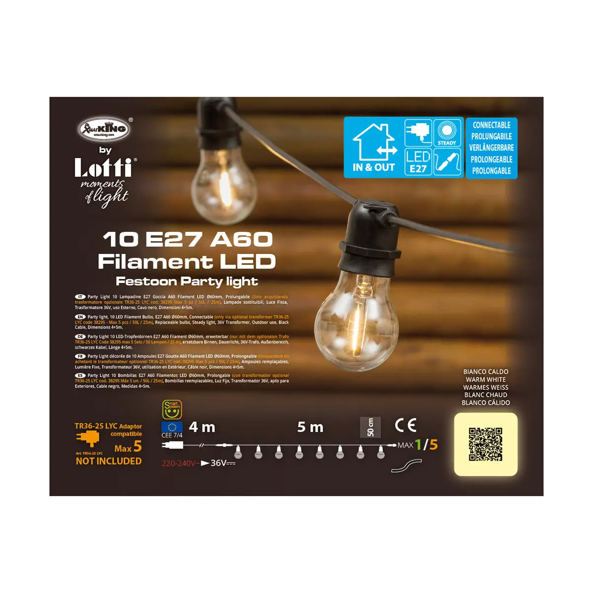 - Prolungabile fino a 5 catene (50 lampadine, 25 m) acquistando il trasformatore opzionale TR36-25 LYC